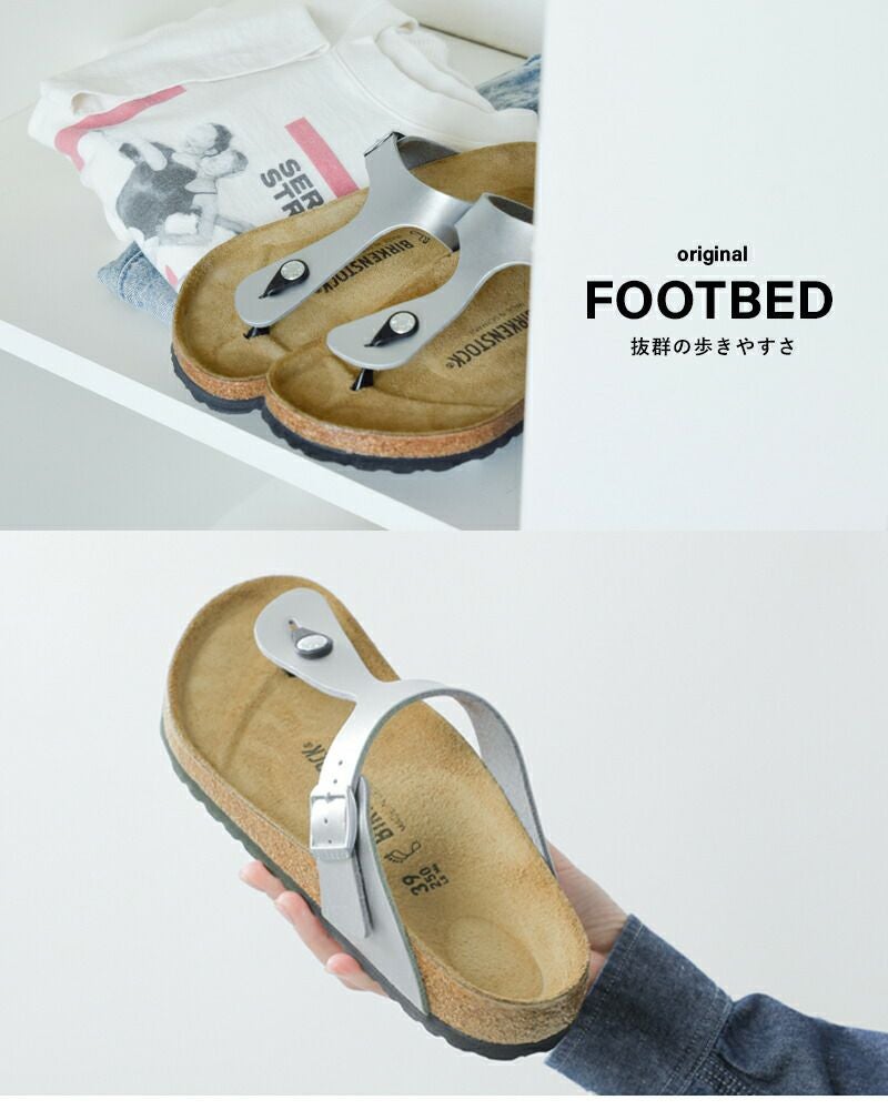 古代ギリシャのサンダルからインスパイアされて誕生したビルケンシュトックの代表的なモデルであるギゼ。トングサンダルとして一番人気です。Tストラップの変わらぬミニマリストなデザインが特徴で、そのシンプルさで履く人のコーディネートを完成させてきました。