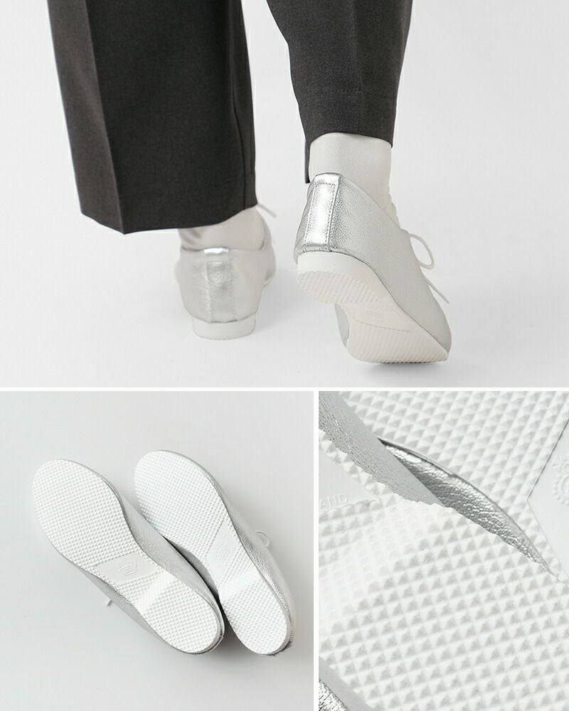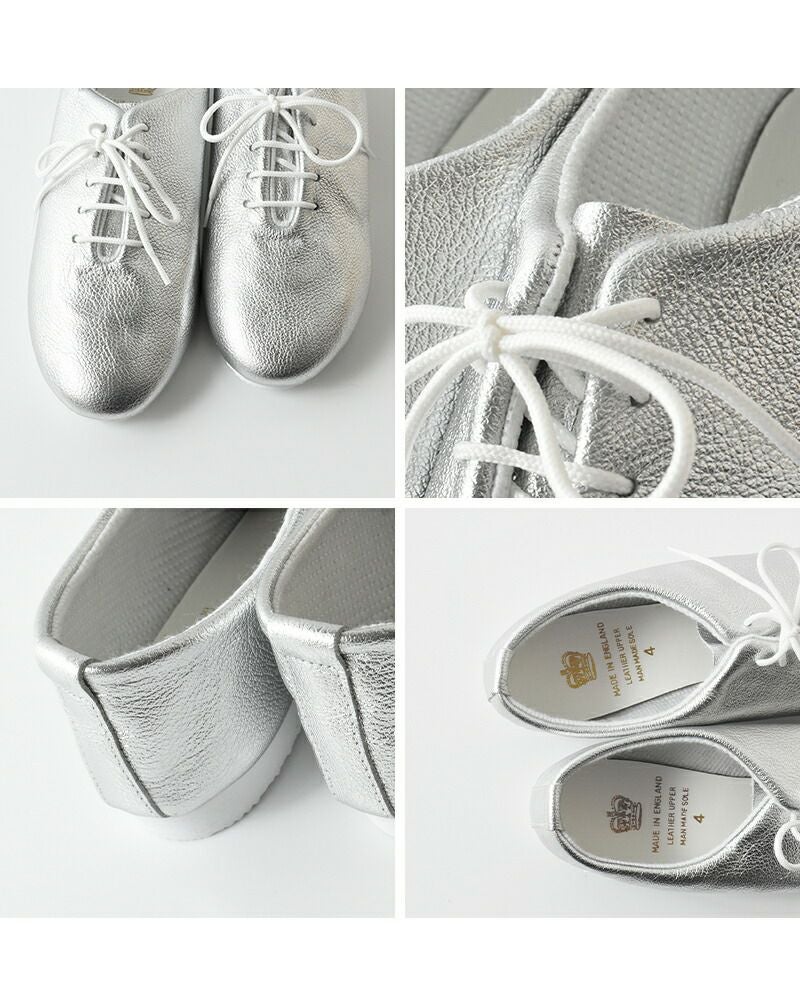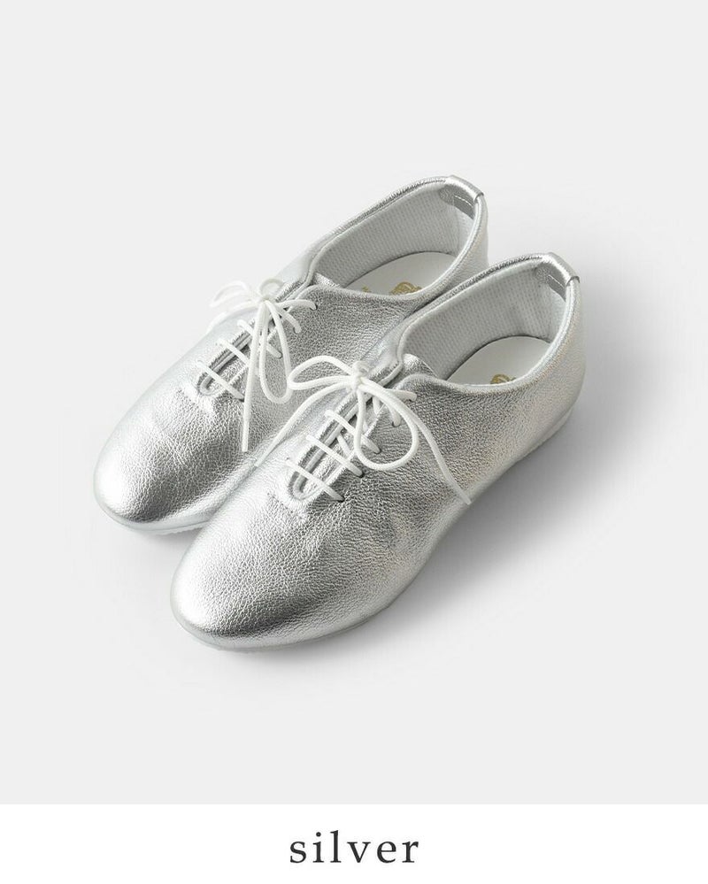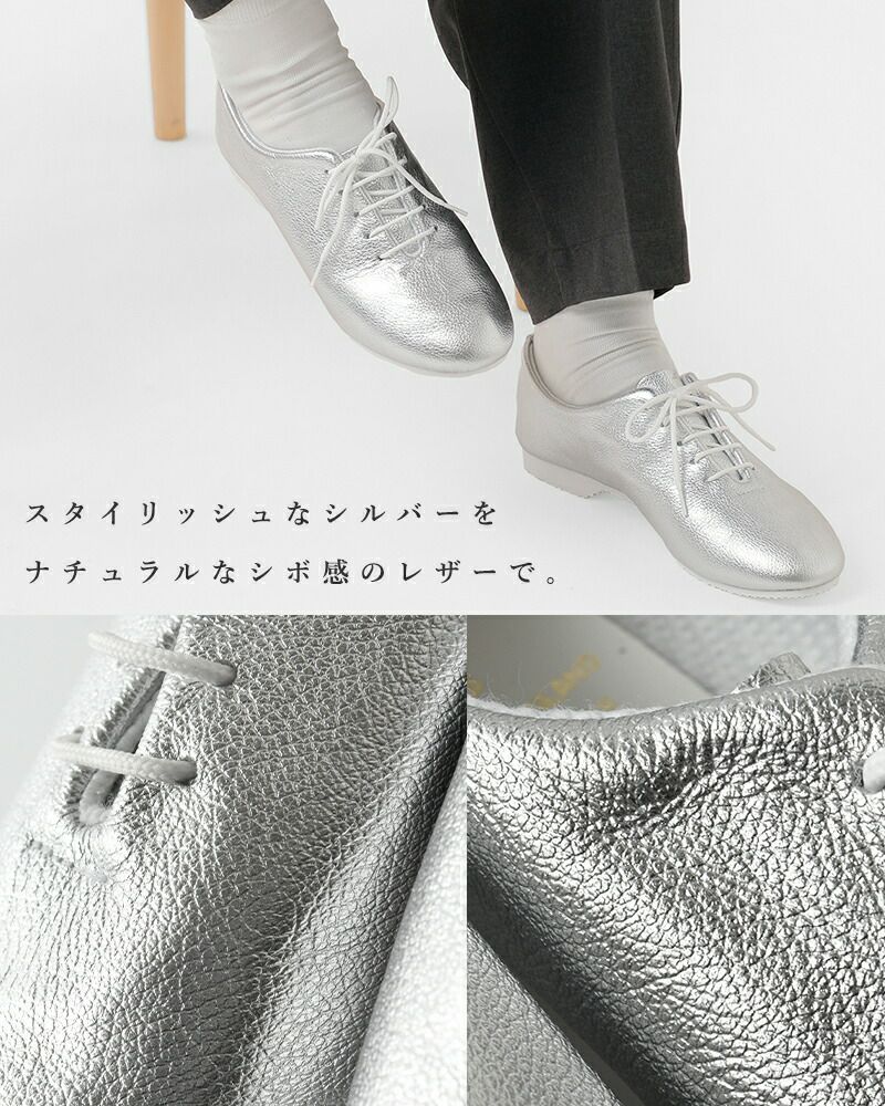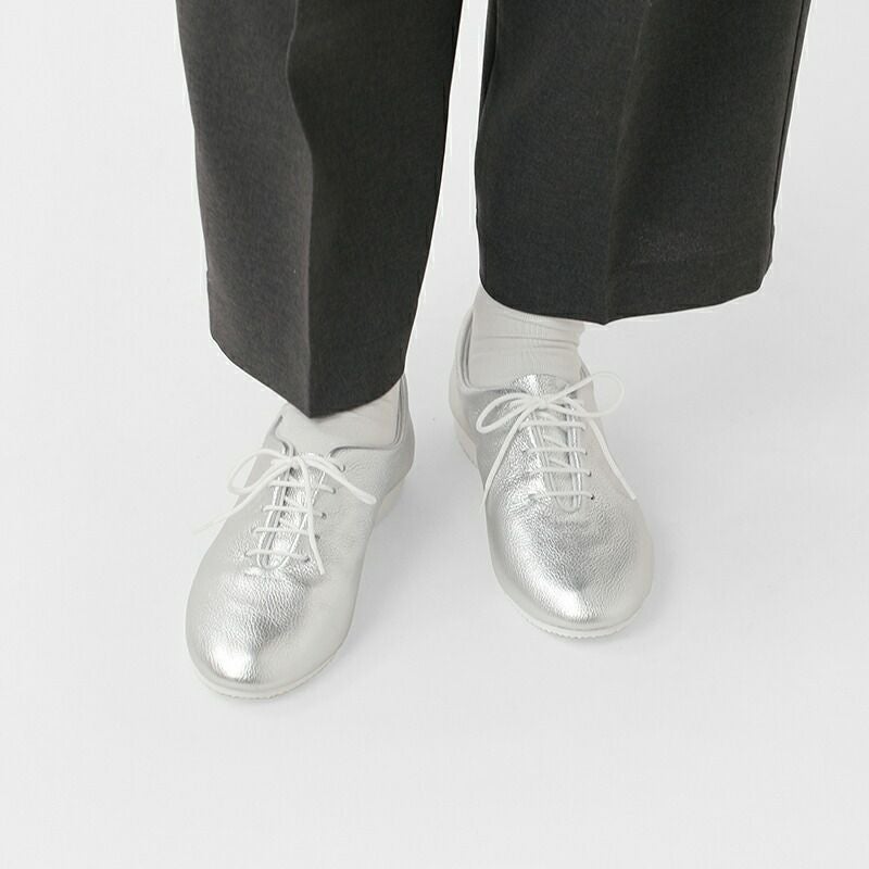 スタイリッシュなシルバーで足元をきらりと華やかに。すっきりとしたフォルムでマニッシュな雰囲気のシューズです。