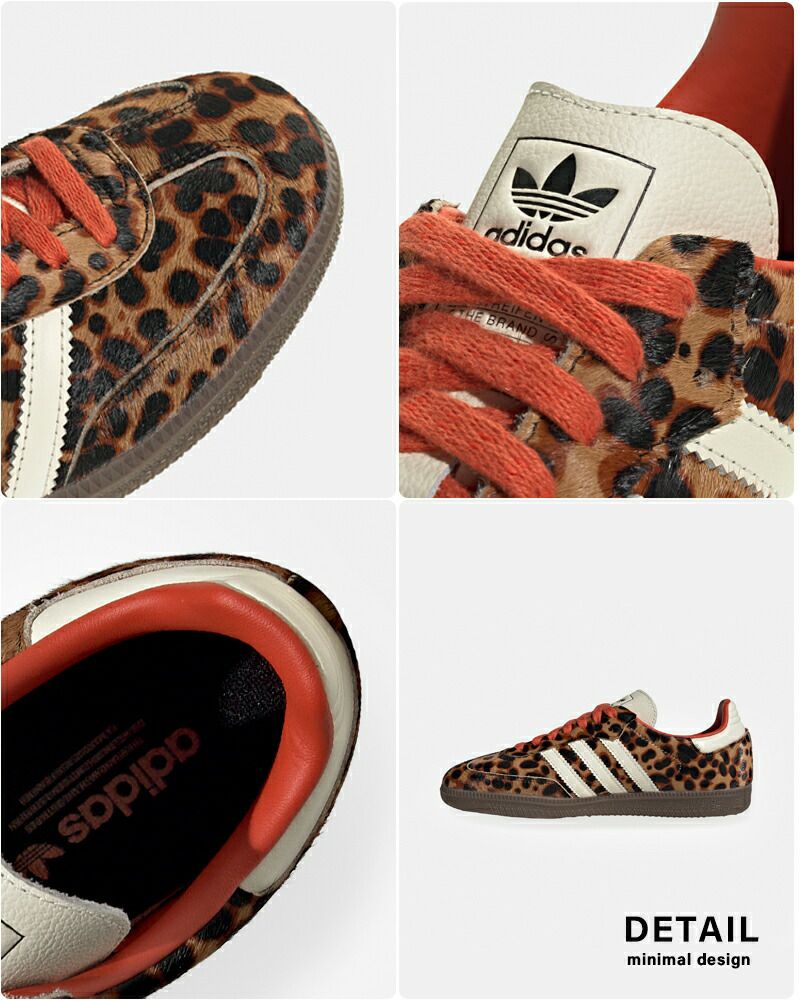 adidas Originals(アディダス オリジナルス)より、サンバOG W チーターレザースニーカー“SAMBA OG W”のご紹介です。紛れもないアディダスらしさを湛えた、シグネチャーシューズ”SAMBA ”。足元に存在感を放つ、チーター柄とレザーのコンビネーションが目を引く一足に仕上がりました。丈夫さとレトロな魅力を象徴する、滑らかなレザーアッパー、つま先の補強、ガムラバーアウトソールを組み合わせたシューズが、外に繰り出す足をサポートしてくれます。