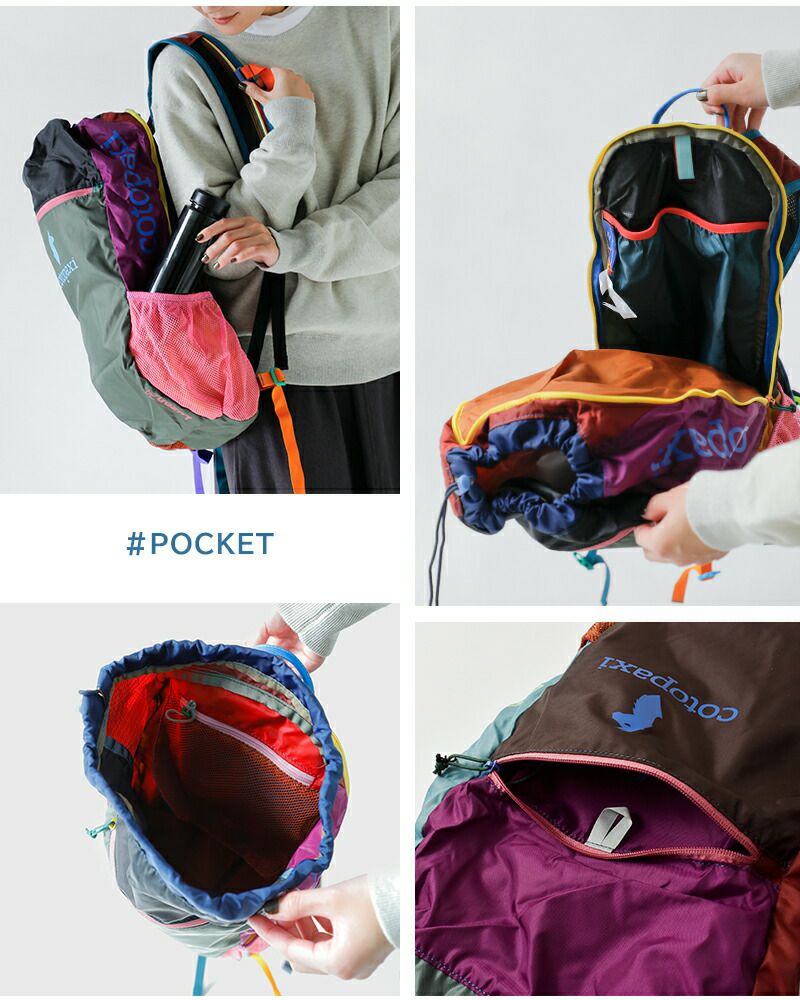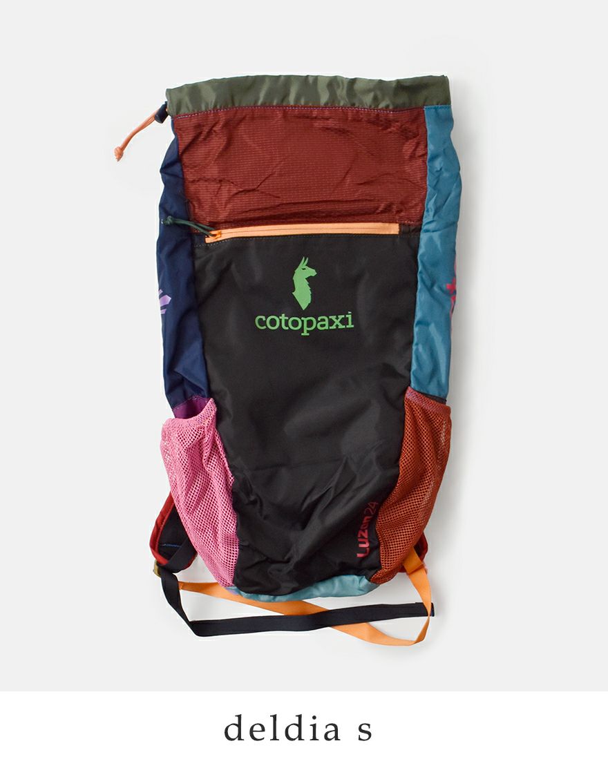 Del Diaはスペイン語で“of the day 「その日」”を意味し、レストランの日替わりメニューのようなその日に仕入れることができる材料で作る料理を表す言葉です。Cotopaxiを代表するDel Diaコレクションは、その日に用意できた素材で、フィリピンの工場の従業員の裁量に任せ作られた自由な配色のバッグコレクションであり、それは同時に世界にたった一つのバッグを意味します。お気に入りのあなただけのバッグを見つけて毎日のおでかけをカラフルにお過ごしください。