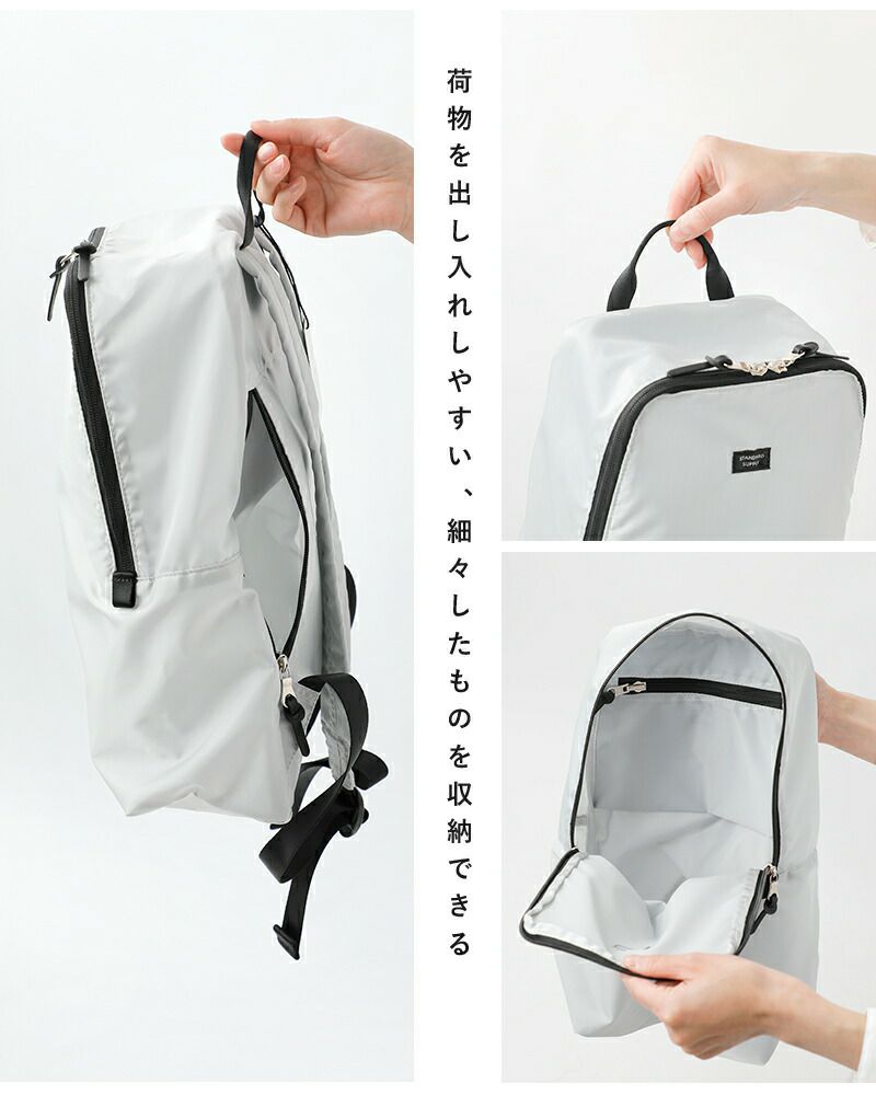 STANDARD SUPPLY(スタンダードサプライ)より、ナイロン デイパック “EASY”のご紹介です。普段使いから旅行や出張時など、荷物が増えてしまった時、幅広く活躍してくれるデイパック。小さく折りたためるパッカブルタイプなので、持ち運びに最適。シンプルで機能的なEASYシリーズは日常に寄り添ってくれます。