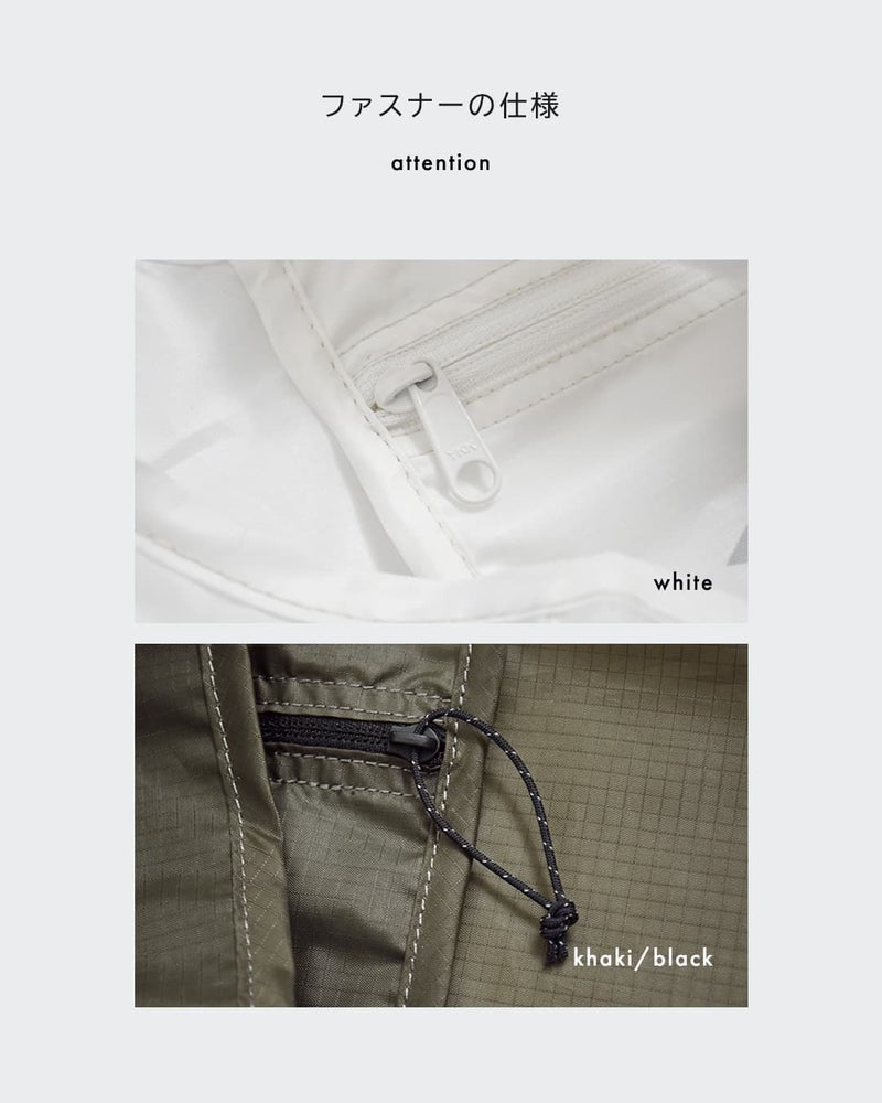 内側のジッパーポケットに本体を小さく折り畳んで収納することが出来ます。ジッパーポケットはバッグ使用時に小物の収納ポケットとして使えます。