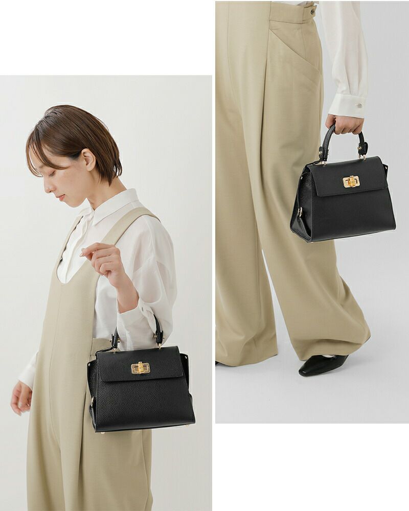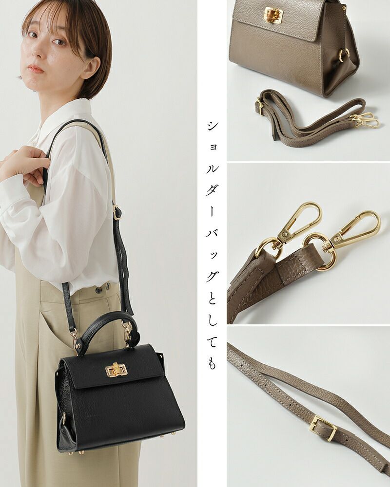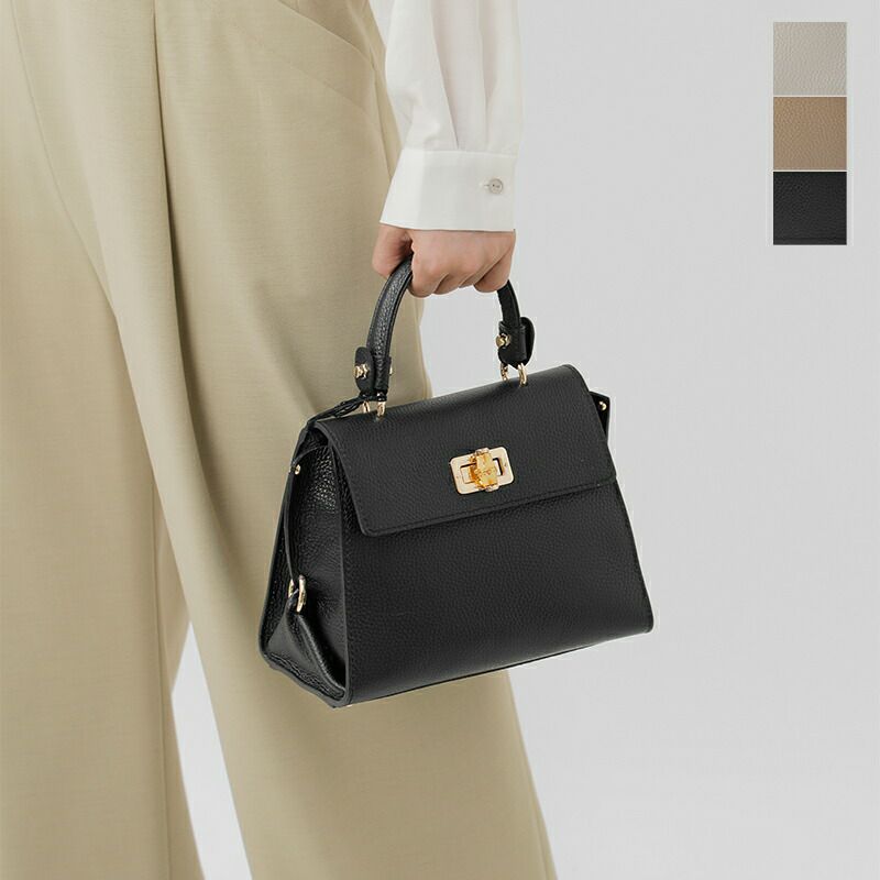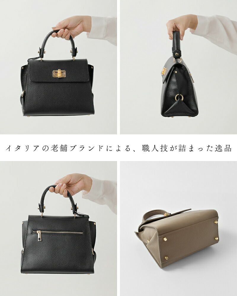 MARCO BIANCHINI(マルコビアンキーニ)よりカウレザー トップ ハンドル バッグのご紹介です。1950年から続くイタリアの老舗ブランドによる、上質な革製品への情熱と職人技が詰まった逸品。シボ加工が施されたカウレザーは、柔らかさと耐久性を兼ね備え、手に馴染むしなやかな質感。高級感のあるバンブー風の金具が上品なアクセントを添えます。内側は開閉しやすいメインコンパートメントに、オープンポケットとファスナーポケットを備え、外側の背面にも便利なファスナーポケットを配置。ショルダーストラップは取り外し可能で、スタイルやシーンに合わせて使い分けできます。フォーマルからカジュアルまで幅広く対応し、持つだけで装いを格上げしてくれる洗練されたバッグです。