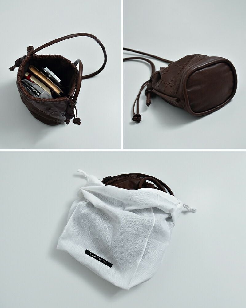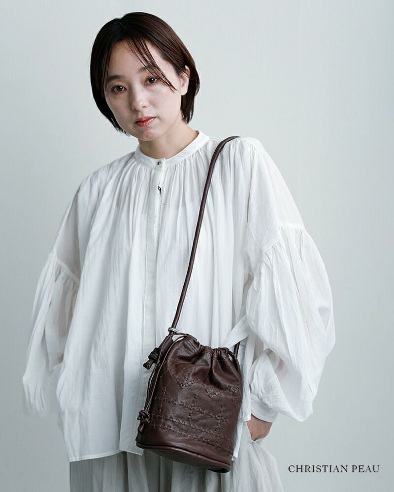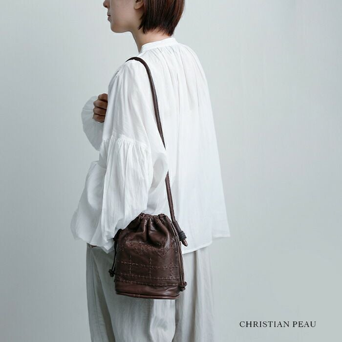 CHRISTIAN PEAU(クリスチャン・ポー・クリスチャンポー)より、カウレザー ショルダー ステッチ バッグをご紹介します。上質な牛革を使用した巾着型のショルダーバッグ。丸みのあるフォルムに、アンティークのような表情で、使い込むほどに艶や柔らかさが増し、革本来の経年変化も楽しめる一点です。 ショルダーストラップはサイドでスライド調整が可能。お好みの長さに変えられます。コンパクトながらマチがあり、見た目以上の収納力も魅力です。