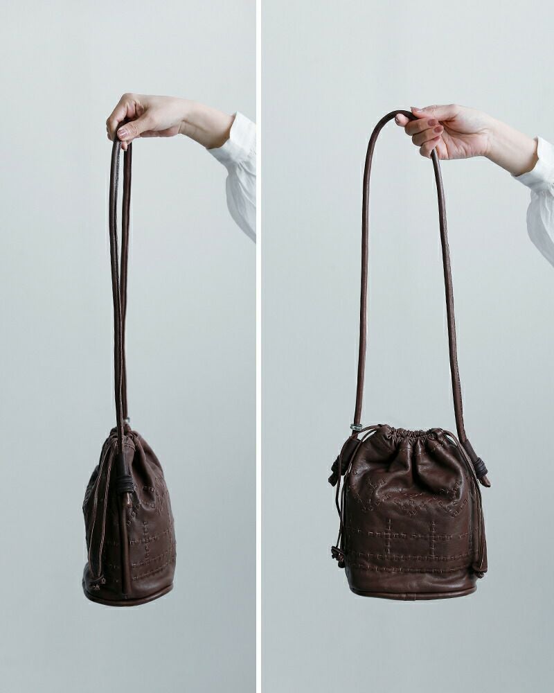 上質なカウレザーの巾着ショルダーバッグ