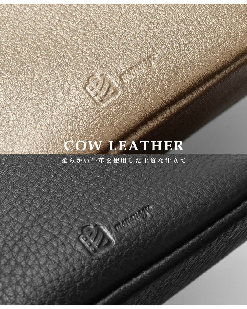 しっとりとした柔らかさが魅力の牛革を使用し、使うほどに手に馴染む贅沢な質感を楽しめます。下部にはさりげなくブランドロゴが刻印されています。