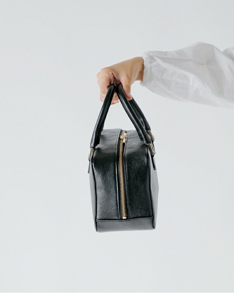 無駄のない美しいフォルムと、カウレザーの高級感が魅力のバッグ。端正な佇まいに仕上げるために、専用の型を作成し、一つ一つポストミシンで縫い上げる伝統的なハンドバッグの仕立てを採用しています。