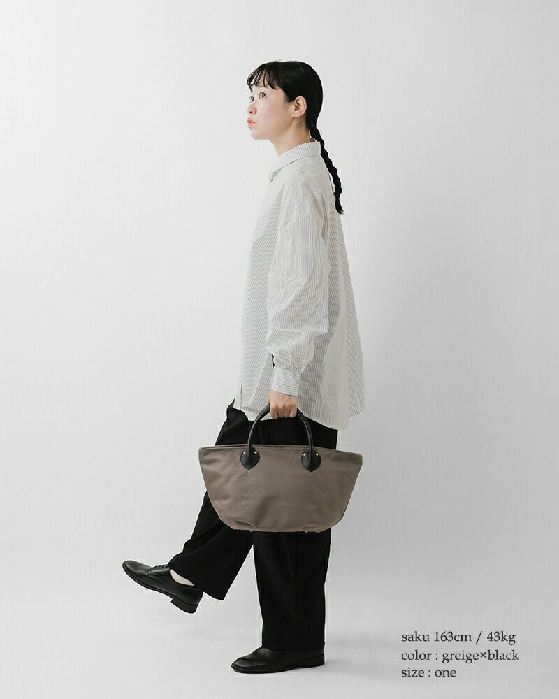 MARINE DAY(マリンデイ)より、66ナイロン×カウレザー ハンドバッグ “S DAISY”のご紹介です。丈夫な66ナイロンと姫路レザーを組み合わせた、上品で機能的な横型トート。小さめA5対応サイズながら底鋲付きで型崩れしにくく、ファスナー開閉で中身も安心。きれいめカジュアルにマッチする万能デザインです。内ポケットも充実しており、収納力も抜群。軽量で持ちやすく、デイリーからお出かけまで幅広く活躍します。