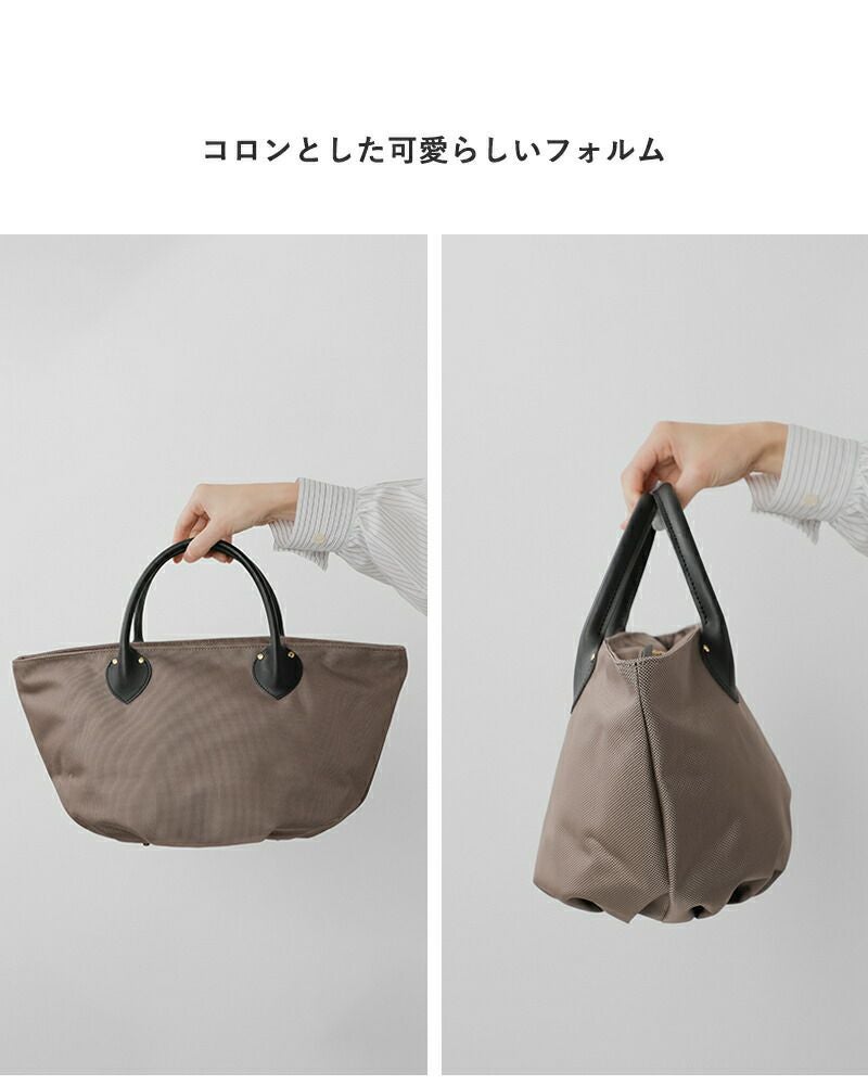 丸みを帯びた形で荷物を入れるとコロンとしたフォルムが特徴的。持ちやすくて女性らしい印象を与えます。