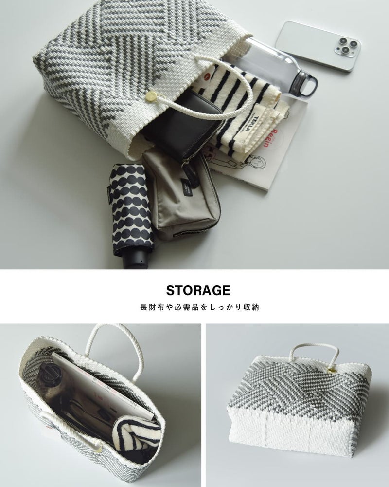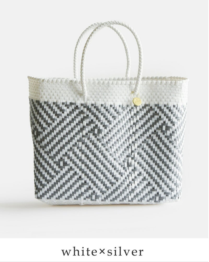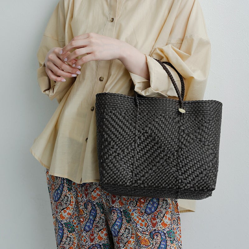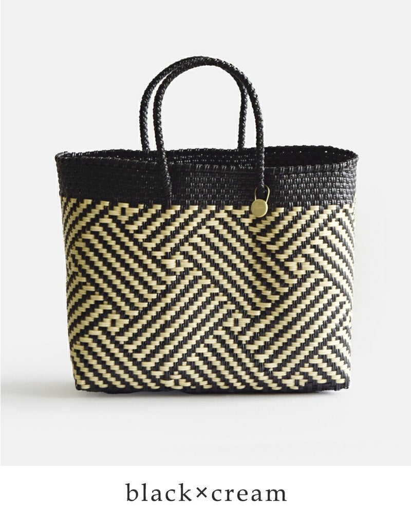 TAPETEはメキシコの伝統的な織物の名称。織り模様のイメージを、メルカドバッグに落としこんだデザインになっています。シンプルながら洗練された柄をより楽しむことができます。編み模様がさりげなく浮かびあがる、美しい仕上がりになっています。きれいめな雰囲気で気軽に持てるXSサイズ。