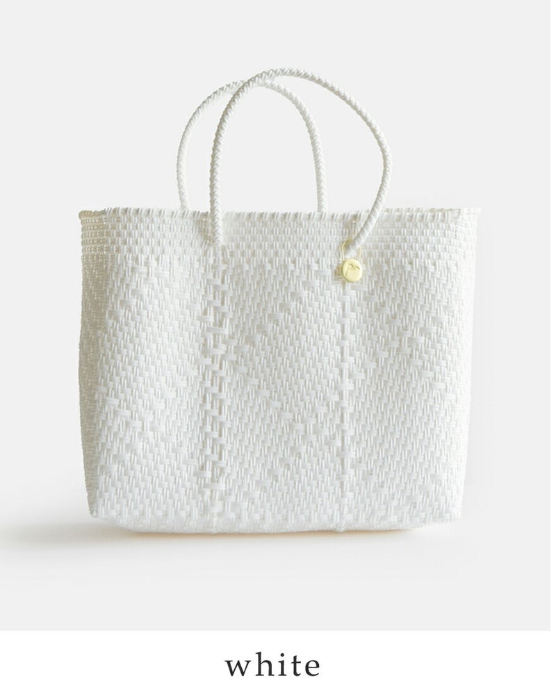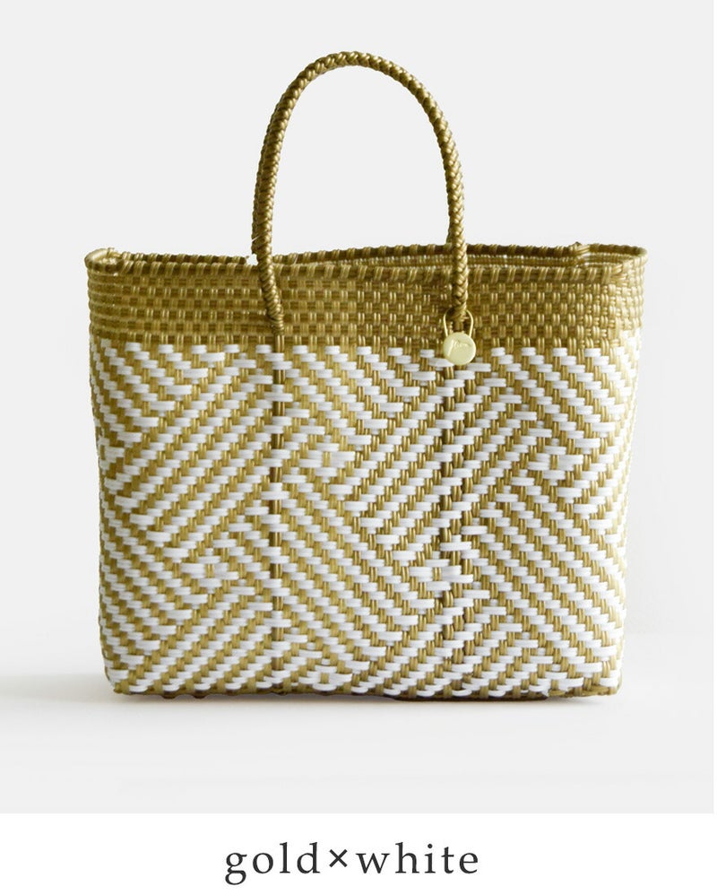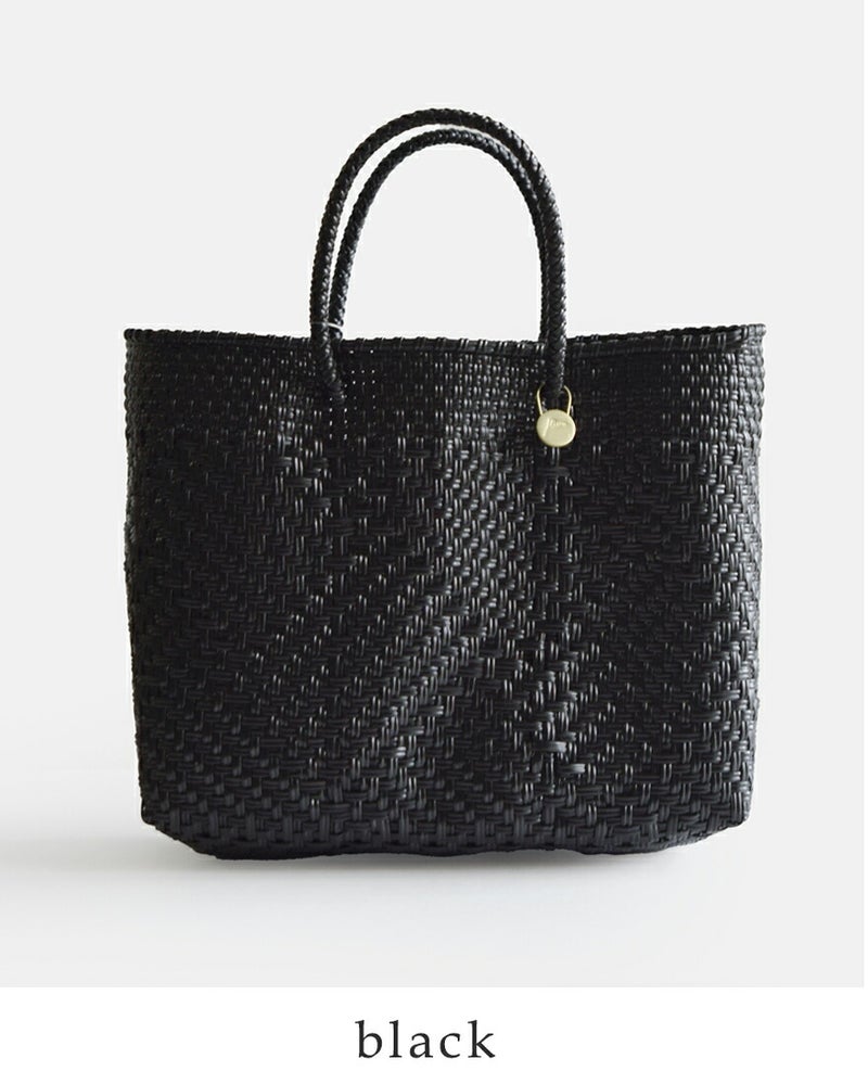 職人の手によって、プラスチックコードで丁寧に編み上げた丈夫なつくり。雨に強く、汚れてもサッと拭くだけの簡単お手入れ。メキシコではマルシェバッグとして使用するくらい丈夫なつくりが魅力的です。