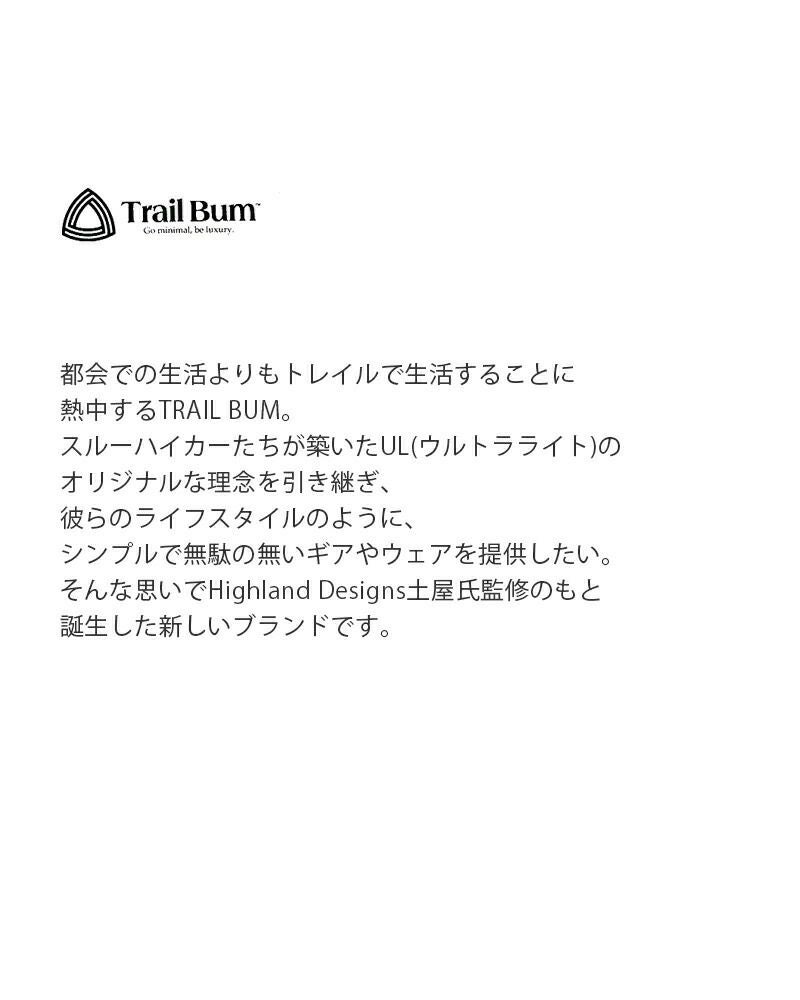 都会での生活よりもトレイルで生活することに熱中するTRAIL BUM。 スルーハイカーたちが築いたUL(ウルトラライト)の オリジナルな理念を引き継ぎ、彼らのライフスタイルのように、 シンプルで無駄の無いギアやウェアを提供したい。 そんな思いでHighland Designs土屋氏監修のもと 誕生した新しいブランドです。