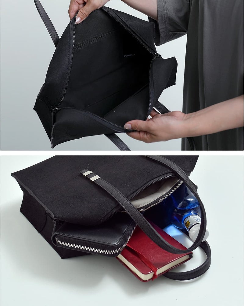 ●内側は布張りでファスナーポケットを配置。貴重品や小物の整理にも便利です。