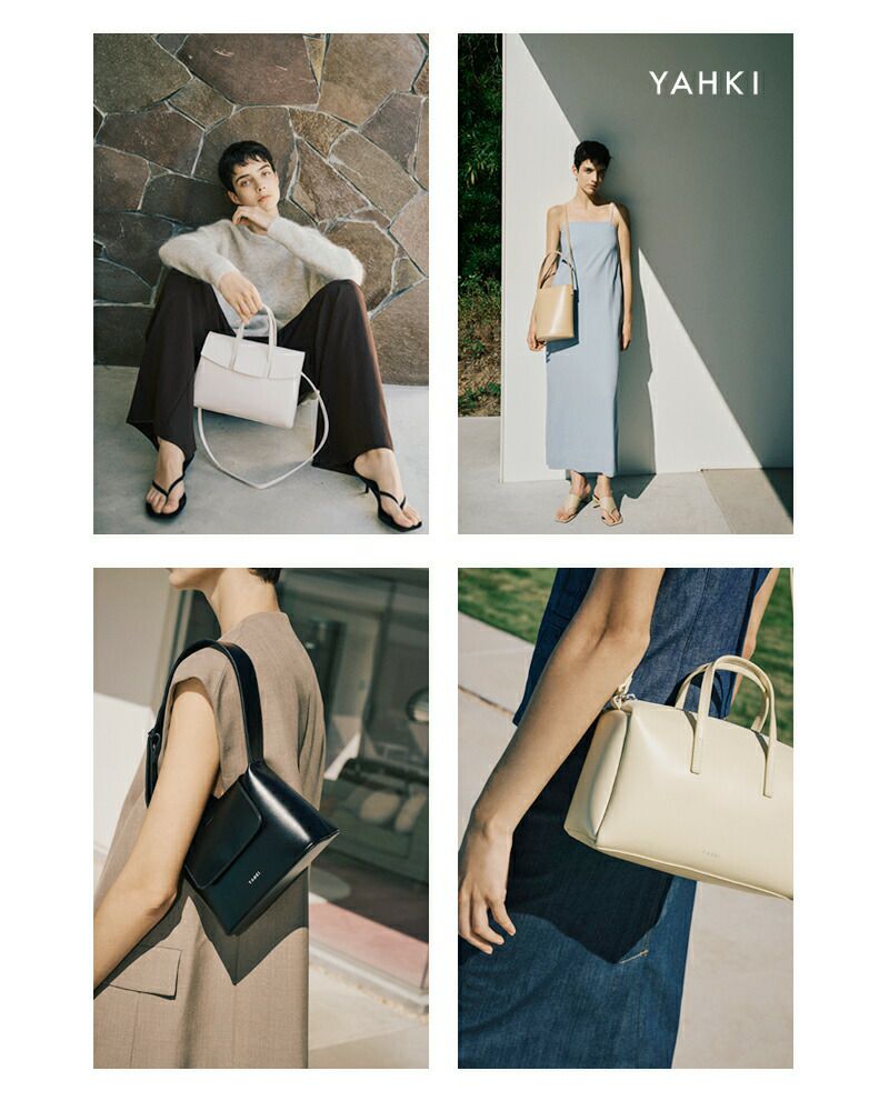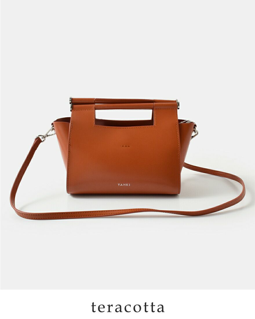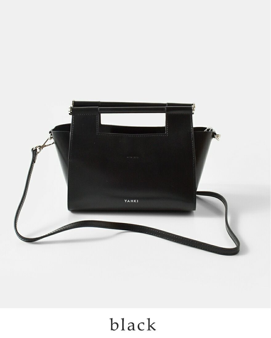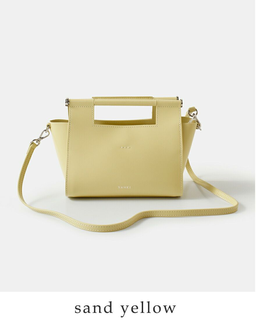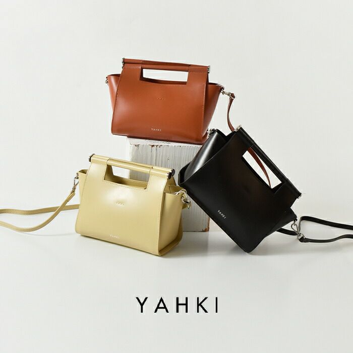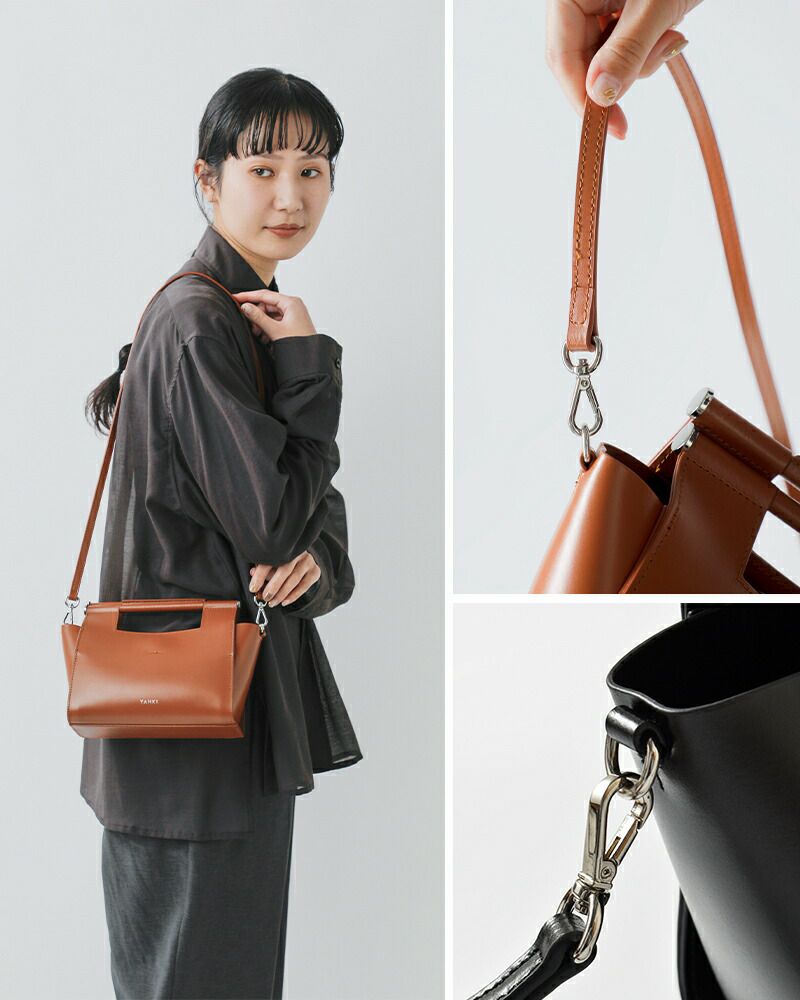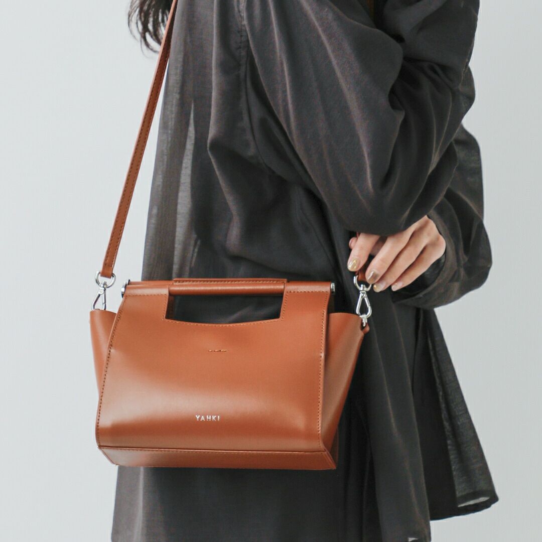 YAHKI(ヤーキ)よりダブルフェイスレザー 2way クロスボディバッグのご紹介です。ミニマルなフォルムに、洗練された存在感を宿すYAHKIらしいデザインの2wayボディバッグ。素材には床革(牛革)を使用。表面に加工を施すことで、発色の美しさと撥水性、耐久性を兼ね備えています。程よくハリのある質感で、型崩れしにくく、デイリーに扱いやすいのも魅力です。トップハンドル付きで手持ちとして、付属のショルダーストラップを使えばクロスボディとしても使える2way仕様。シーンやスタイリングに合わせて持ち方を変えられます。コンパクトながらマチをしっかり確保し、必要な荷物をスマートに収納可能。シンプルなコーディネートに合わせるだけで、洗練された印象をプラスしてくれるバッグです。