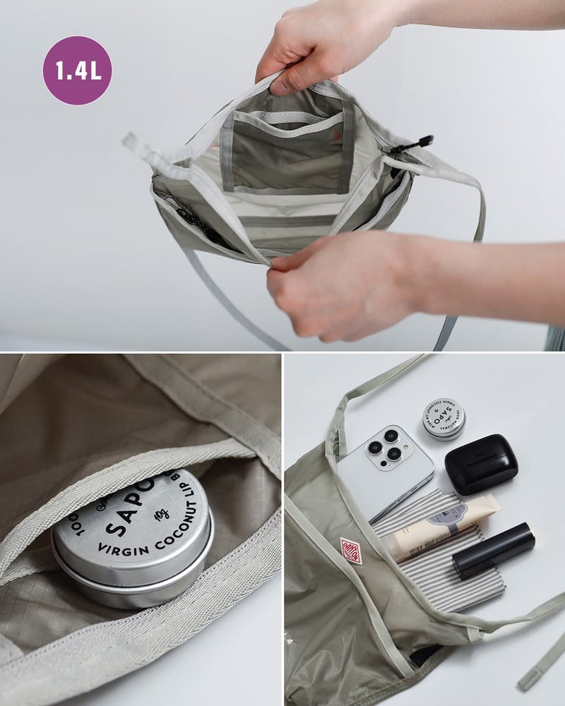 すっきりとしたコンパクトなシルエットで、かさばらないサイズ感。旅行時のサブバッグとしてはもちろん、日常使いにも幅広く活躍します。