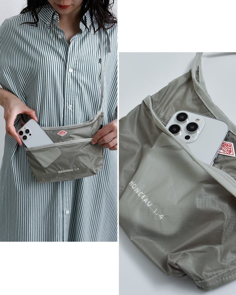 DANTON(ダントン)より、コーデュラリップストップサコッシュ MONCEAU 1.4のご紹介です。旅行や買い物など、ちょっとした外出に便利なコンパクトサイズのサコッシュ。フロントポケットと内ポケットを備え、荷物をすっきりと整理できる使い勝手の良さも魅力です。生地には、コーデュラナイロン糸を使用した薄手のリップストップ素材を採用。なめらかなタッチと軽やかな持ち心地に加え、発色の良いスポーティな表情がスタイリングにさりげないアクセントを添えます。内ポケットに本体を収納できるポケッタブル仕様で、持ち運びにも便利な一品です。