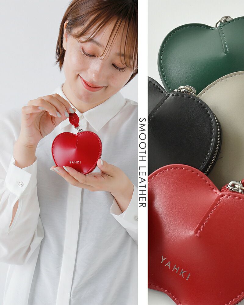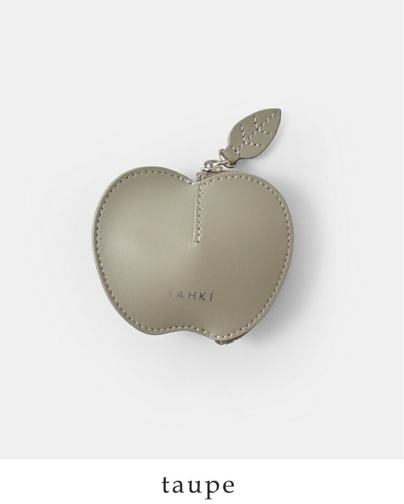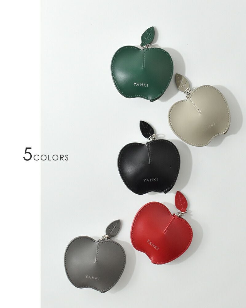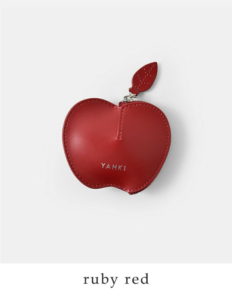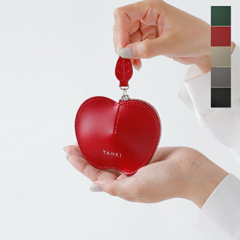 YAHKI(ヤーキ)よりスムースレザー アップル ミニポーチのご紹介です。スムースレザーのミニポーチ。コインや常備薬などさまざまな小物を可愛く持ち運べるリンゴのデザイン。ファスナーの引き手が葉っぱ型なのもポイント。 中央が膨らんだ立体型なので、ボリュームのあるリングなどジュエリーケースとしてもぴったり。ギフトにもおすすめです。