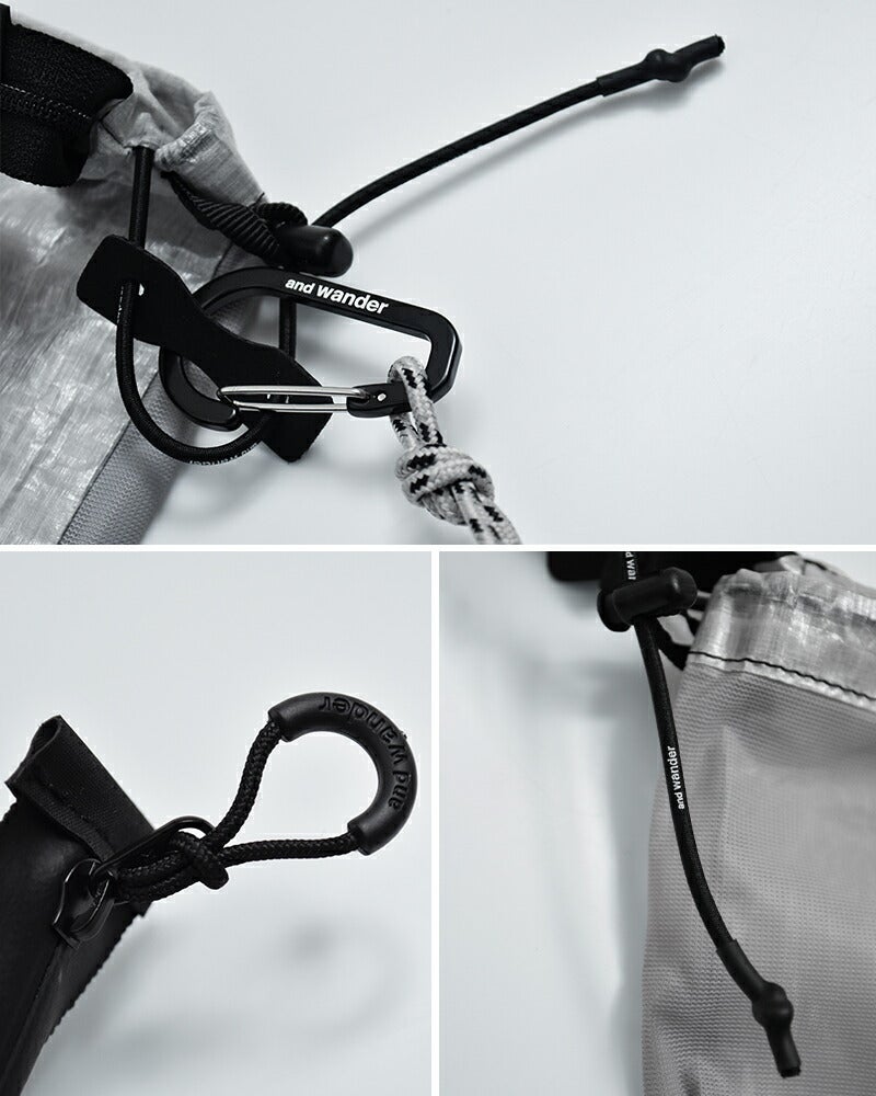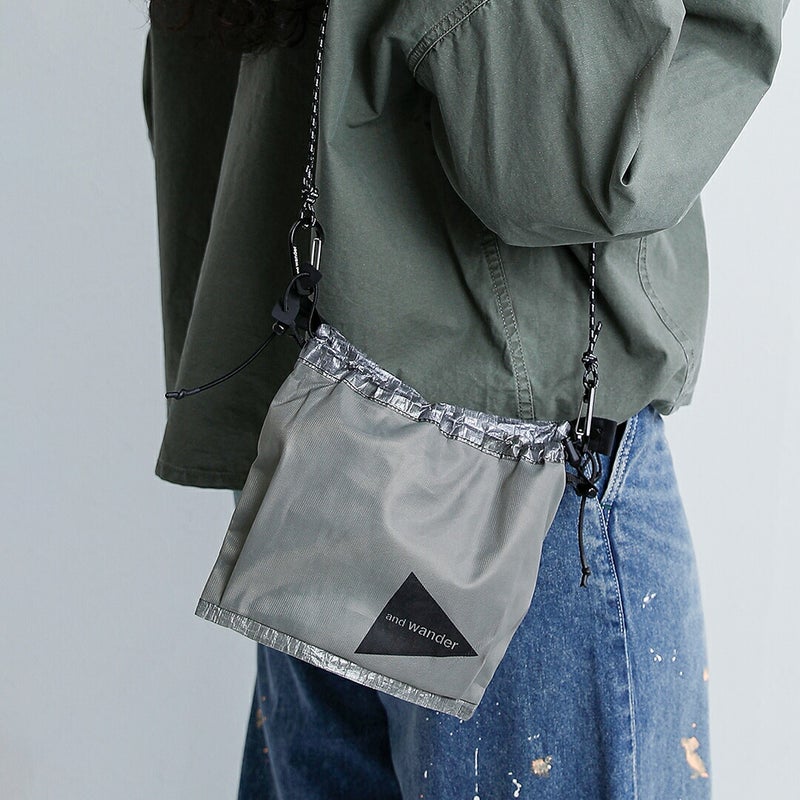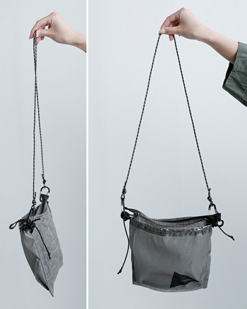 高機能素材を使用しながら、見た目はあくまでシンプル。気負わず使えて、ふとした雨にも頼れるサコッシュ。ドローコードを絞ることでシルエットの変化も楽しめます。