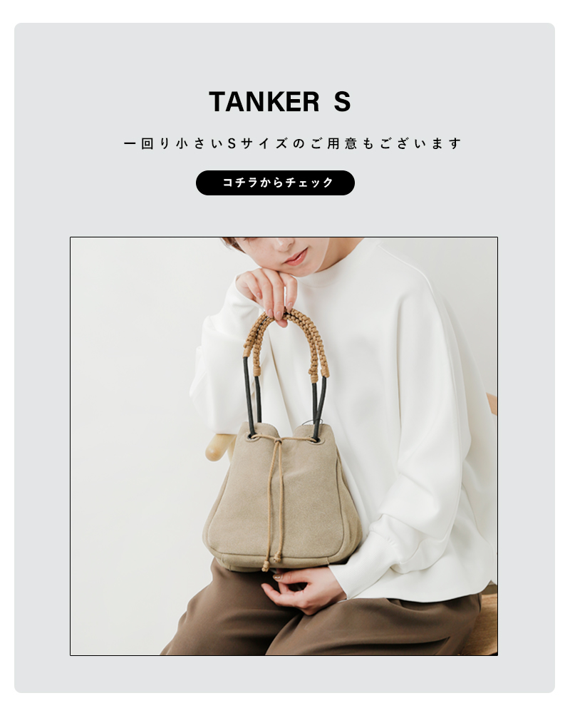 HAIDA(ハイダ)より、スエード2wayトートバッグ“TANKER M”のご紹介です。一つずつ編まれたハンドルが印象的な、巾着タイプの新型コレクション。HAIDAの特徴でもある、編み方が特長的なパラシュートコードのハンドルは、ロープを調整することによって長さの変更が可能です。お財布(長財布も◎)・携帯・小物類・500mlのペットボトルなどが充分収まる、使いやすいサイズ感が特徴です。 巾着を広げればA4サイズ、13インチのノートパソコンも入るのが嬉しい♪