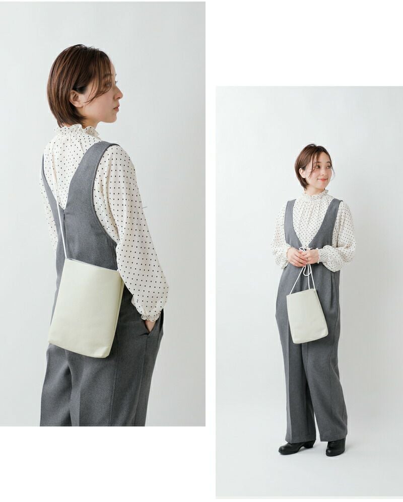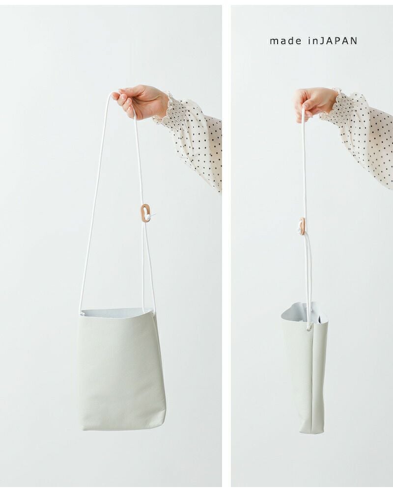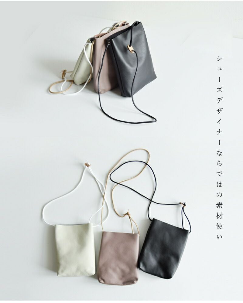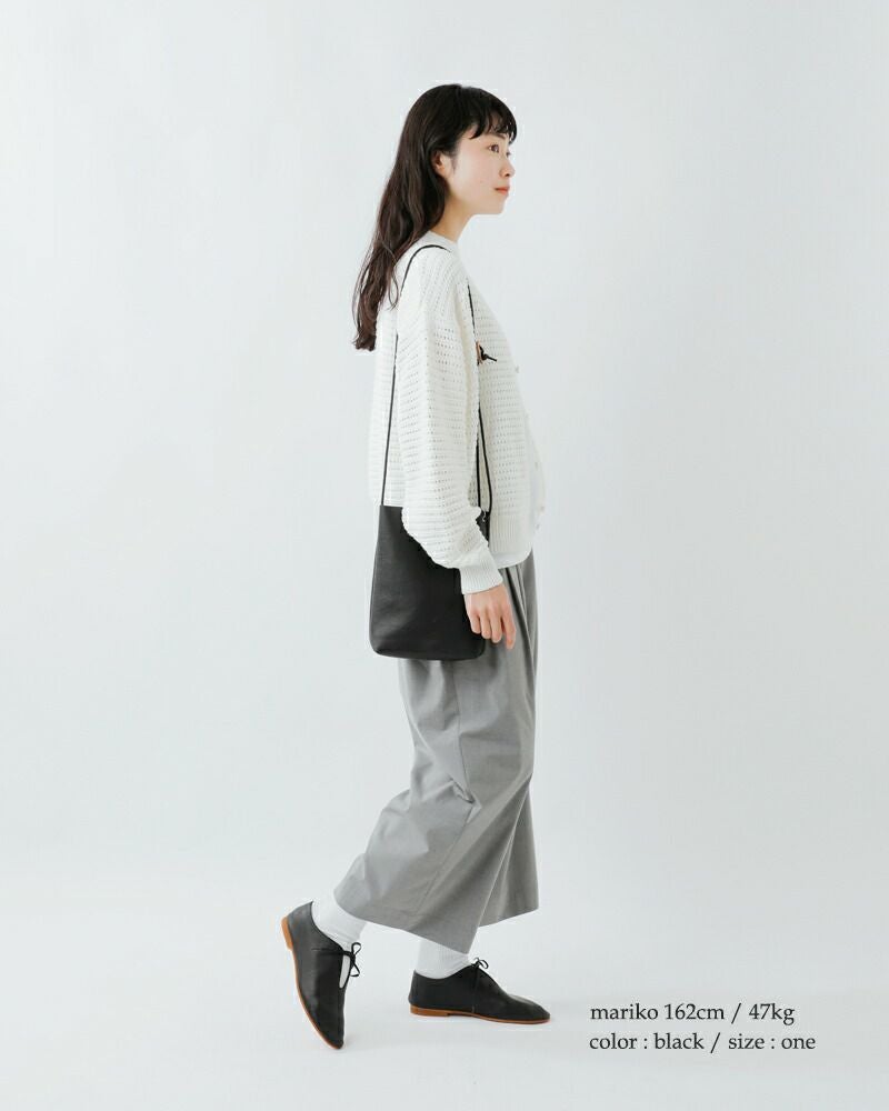 レザーソールの残り革を活用した留め具やシューレース等、靴デザイナーならではの発想で作られた魅力的なディテール。ショルダー紐は長さ調節が可能。肩掛け、斜め掛けの両方が使え、その日のスタイルに合わせていただけます。