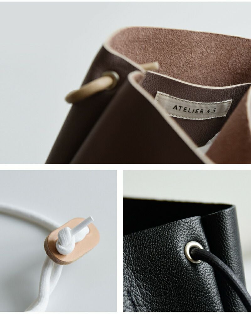 ATELIER 4.5(アトリエ4.5)より、軽くて柔らかい、オリジナルのゴートレザー(山羊革)を採用したコンパクトなサコッシュが届きました。レザーソールの残り革を活用した留め具やシューレース等、靴デザイナーならではの発想で作られた魅力的なディテール。マチを施した縦型のフォルムで、レザーの上品な風合いを活かしたシンプルなプロダクトに仕上がっています。