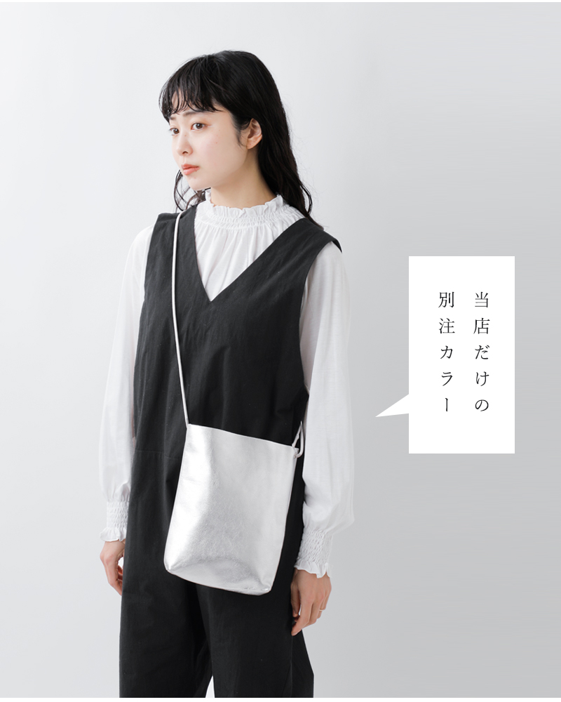 ATELIER 4.5(アトリエ4.5)より、軽くて柔らかい、オリジナルのゴートレザー(山羊革)を採用したコンパクトなサコッシュが届きました。レザーソールの残り革を活用した留め具やシューレース等、靴デザイナーならではの発想で作られた魅力的なディテール。マチを施した縦型のフォルムで、レザーの上品な風合いを活かしたシンプルなプロダクトに仕上がっています。