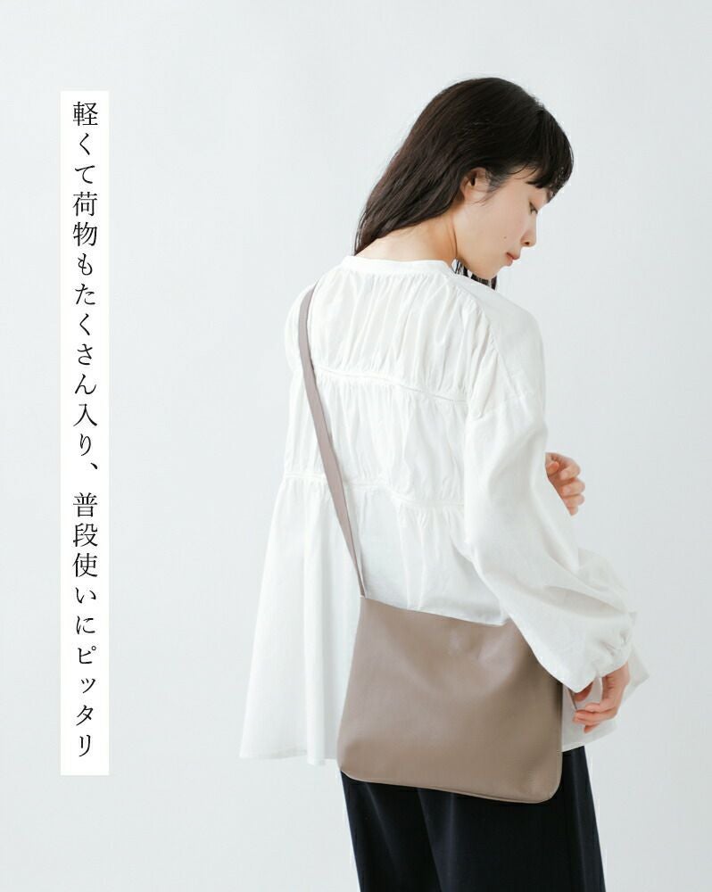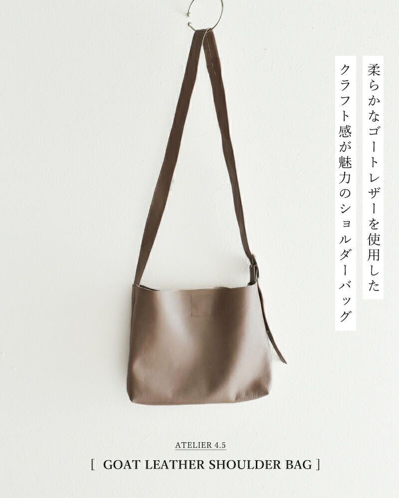 ATELIER 4.5(アトリエ4.5)より、軽くて柔らかい、オリジナルのゴートレザー(山羊革)を使用したショルダーバッグが届きました。マチを施した横長のフォルムで、レザーの上品な風合いを活かしたシンプルなデザイン。マグネット仕様でワンタッチ開閉ができ、機能性もしっかり備えたショルダーバッグに仕上がっています。