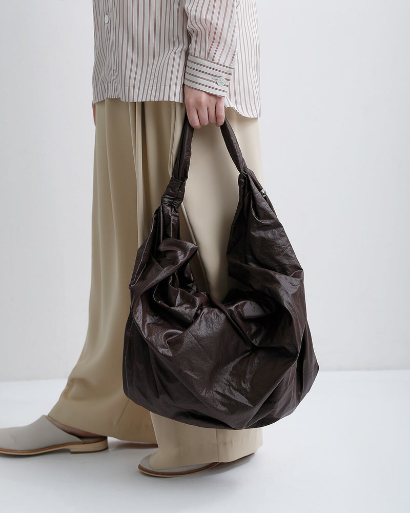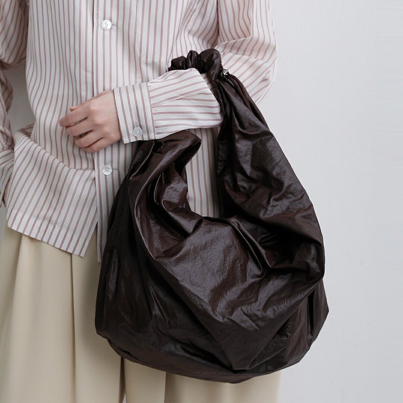 荷物を入れることで生まれる柔らかなドレープシルエットが、スタイリングにこなれた抜け感を演出します。