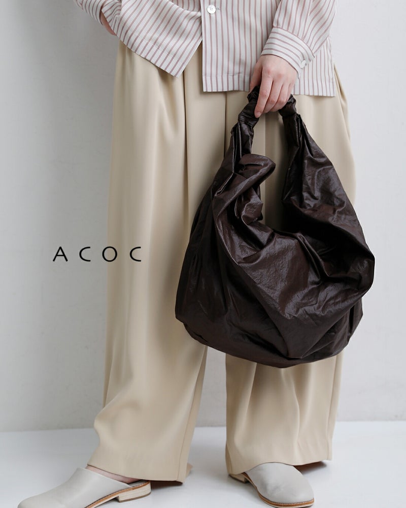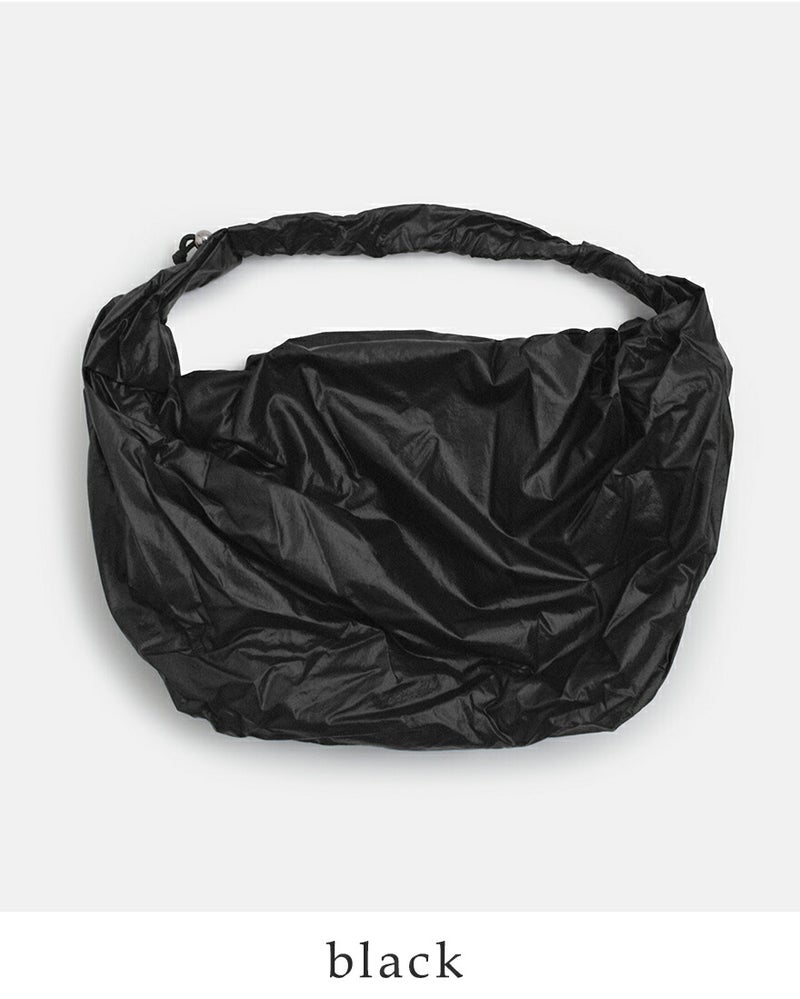 ACOC(アコック)よりグロッシーミッドタングルツイストバッグ Glossy Mid Tangle Twist Bagのご紹介です。ほのかな光沢感と美しいドレープが魅力の、都会的でスポーティーなナイロン製2wayバッグ。ツイストデザインが目を惹くストラップはドローコードで長さ調節ができ、ショルダーからクロスボディまで自在な持ち方が楽しめます。軽やかでタフな使い心地に加え、内側のジッパーポケットなど実用性も高く、日常の着こなしに洗練された抜け感を添える一品です。