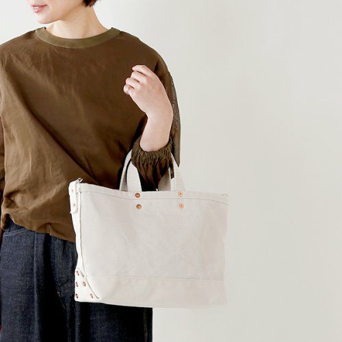 P.T WORKS&DESIGN(ピーティーワークスアンドデザイン)よりTOOLスタンダードキャンバストートSのご紹介です。岡山産の4号帆布を使用した頑丈で無骨なトートバッグは、最初は固いですが使い込むほどに柔らかくなり味が出るので、長く愛用する楽しみが詰まった一品です。サイドについたDカンでお好みのショルダーを装着可能。気兼ねなく使えるシンプルトートは、コーディネイトを選ばずデイリーにぴったりです。
