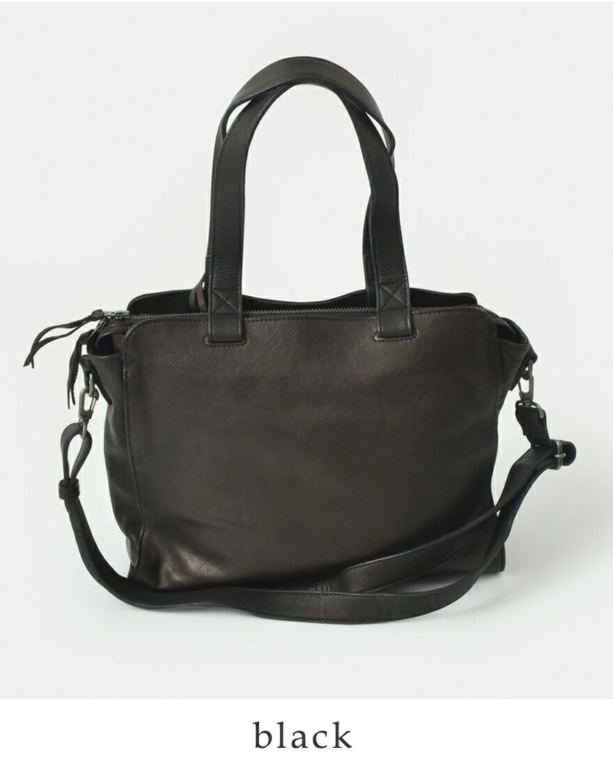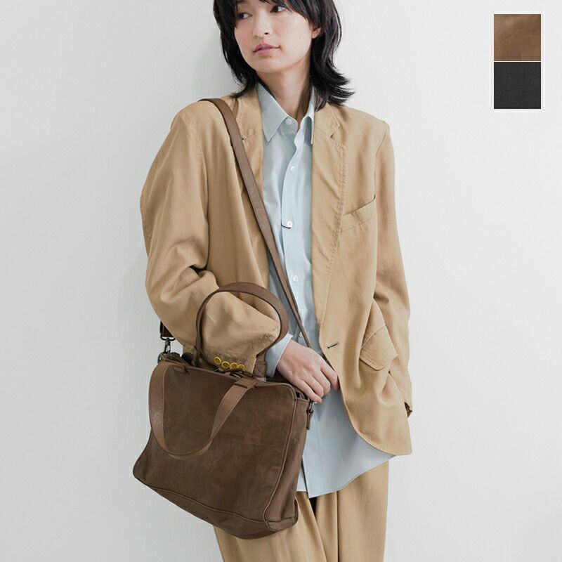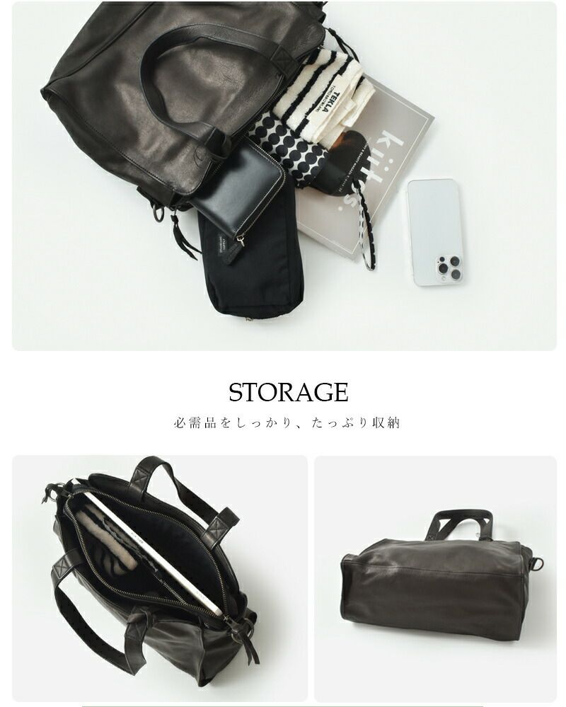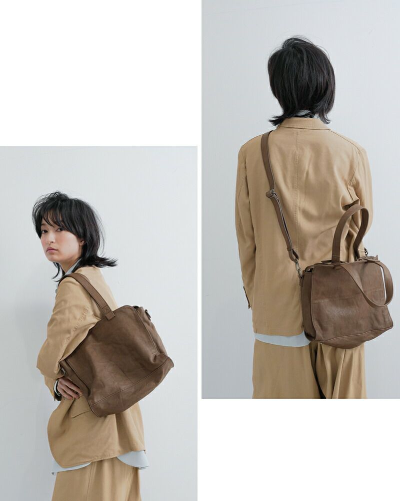 ストラップ付きで、トートバッグとしても、ショルダーバッグとしてもお使いいただけます。あらゆるシーンに対応してくれる、汎用性の高さが魅力。くたっとした風合いで、身体にもすっと馴染みます。