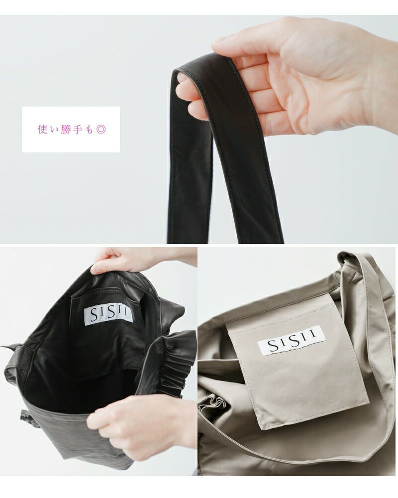 Sisii(シシ)より、フリルが目を惹くフェミニンなレザートートバッグ届きました。 縁取るように配されたフリルが華やかなアクセントになった大きめトートバッグ。オリジナルのカウレザーは柔らかくて軽く、気軽に持つことが出来ます。カジュアルからキレイめまで幅広いコーディネートでも活躍してくれます。