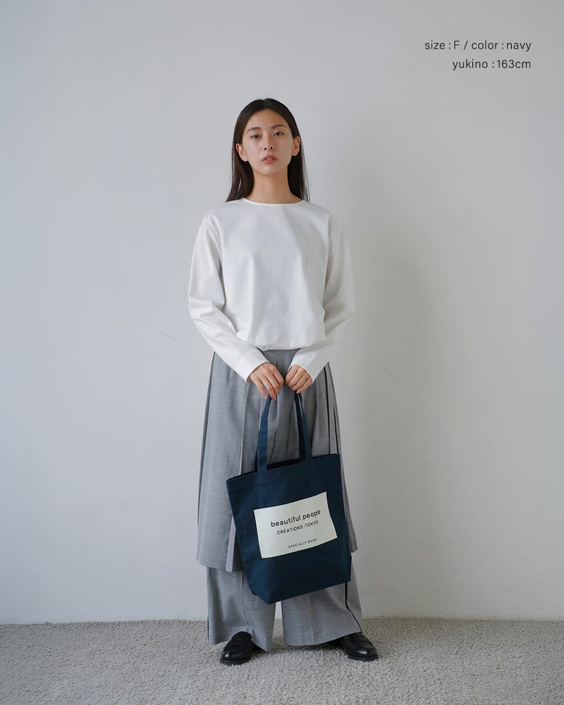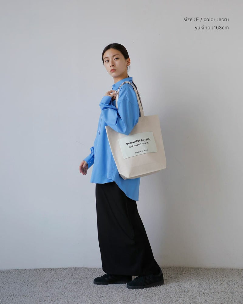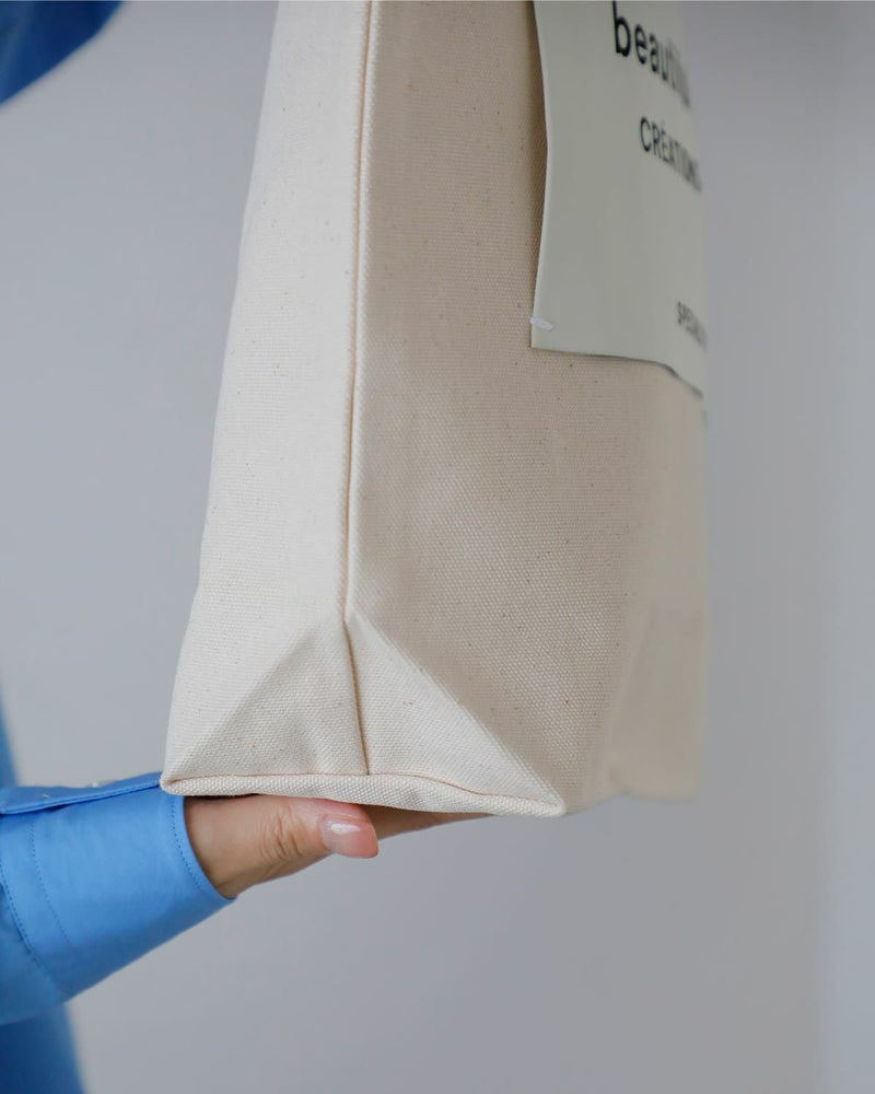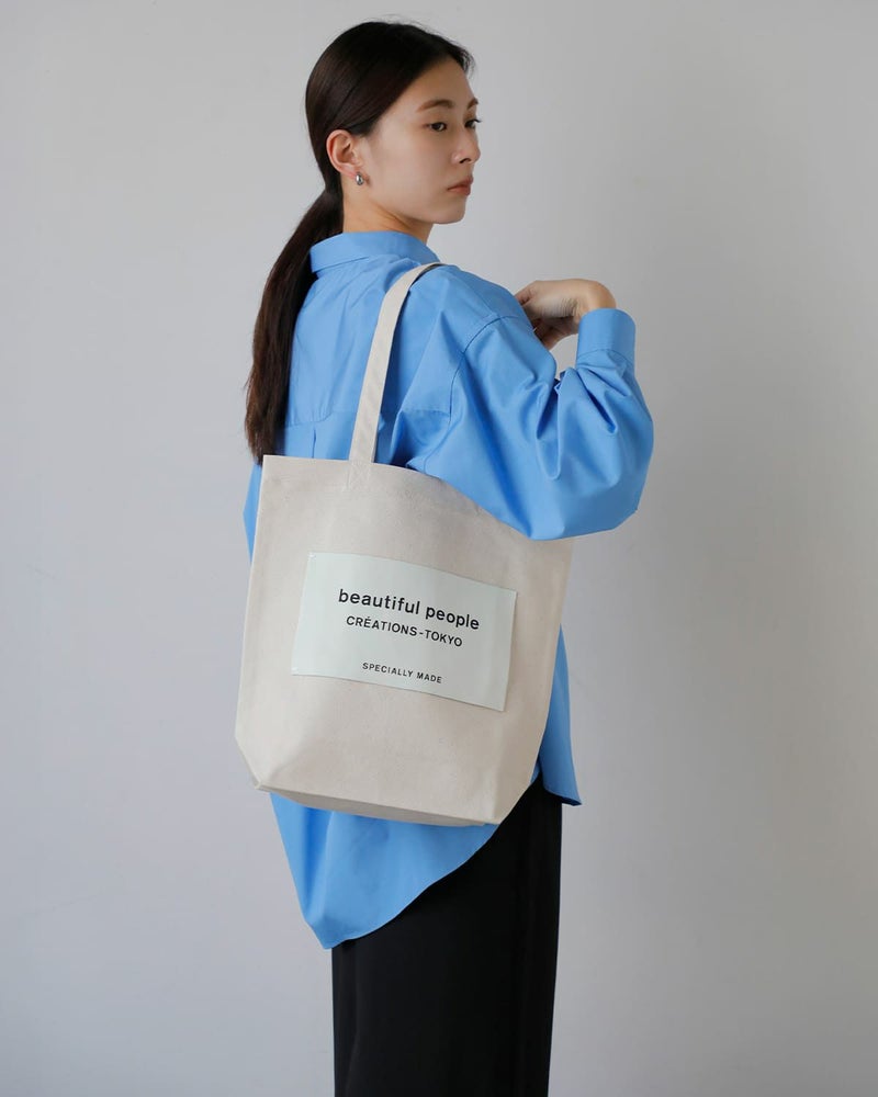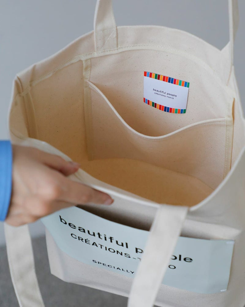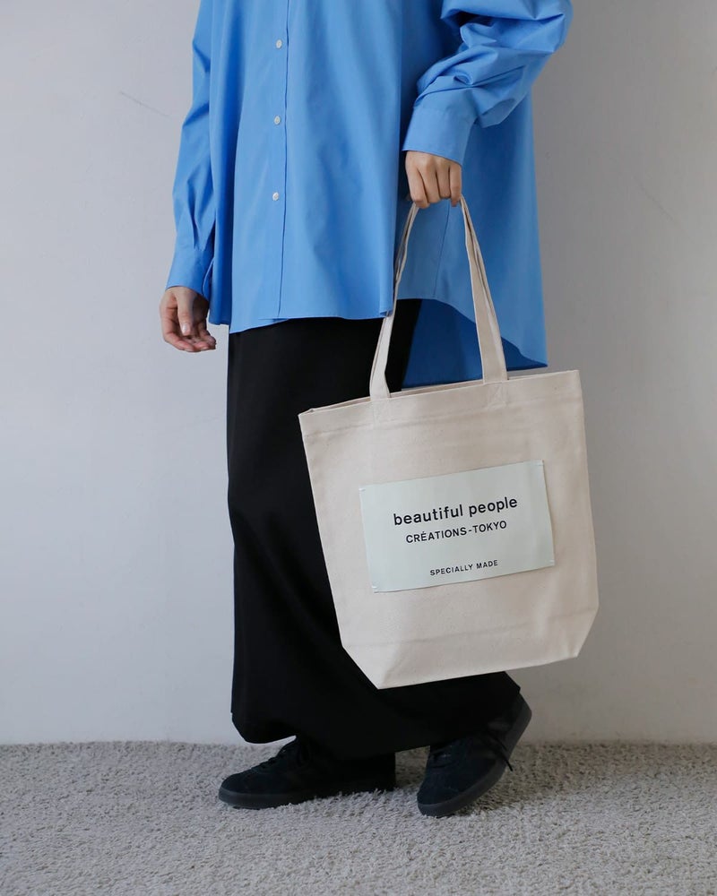ブランドの定番ネームトートを、持続可能な視点で再構築したモデル。本体サイズはそのままに、背胴裏へポケットを追加し、持ち手を長めに調整することで使い勝手を向上。生地はよりしっかりとした号数へアップデートされ、日常使いに安心感のある仕上がりです。A4サイズが収まる容量を備えながら、アイコニックなビッグネームが視覚的なアクセントに。素材・副資材に至るまで配慮が行き届いた、機能性と思想性を兼ね備えたトートバッグです。