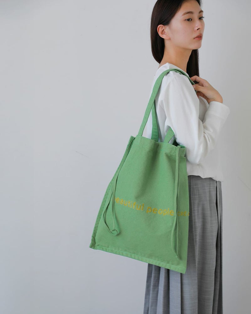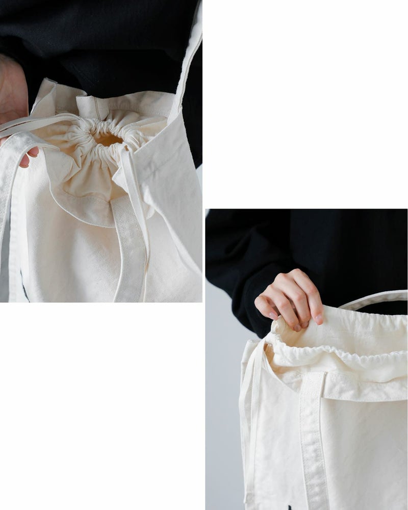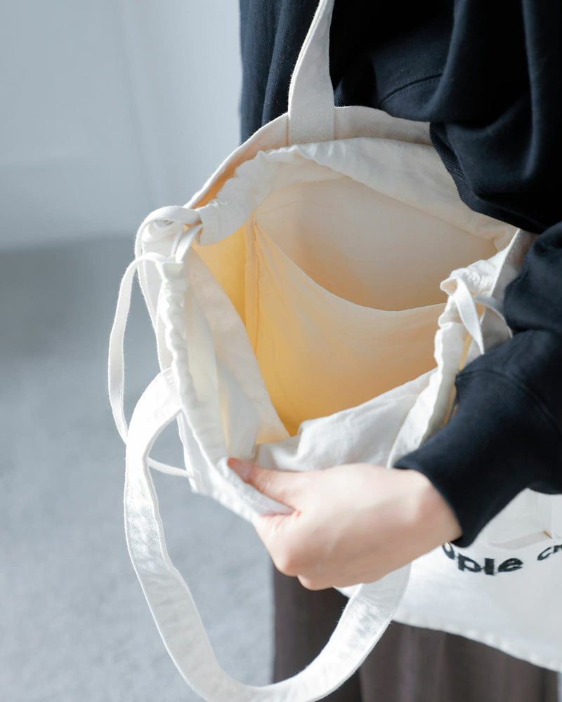 バッグの内側は巾着仕様でシルエットをアレンジして楽しむことができます。