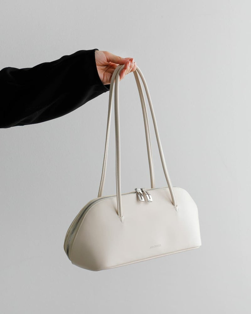 エレガンスを感じさせるラウンドフォルムと細身のストラップがつくる、洗練された雰囲気のバッグです。柔らかく女性らしい印象を保ちながらも、普段使いにも馴染む軽やかさを持ち、日常と特別なシーンのどちらにもすっと溶け込みます。