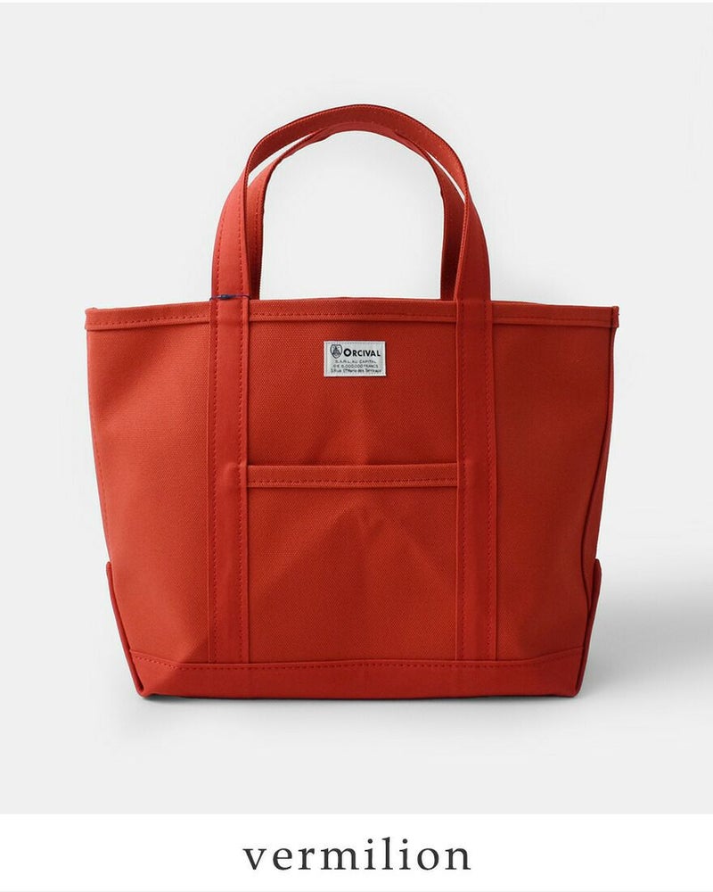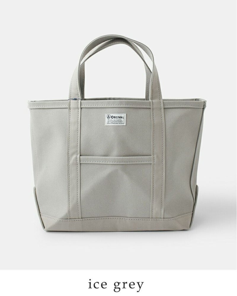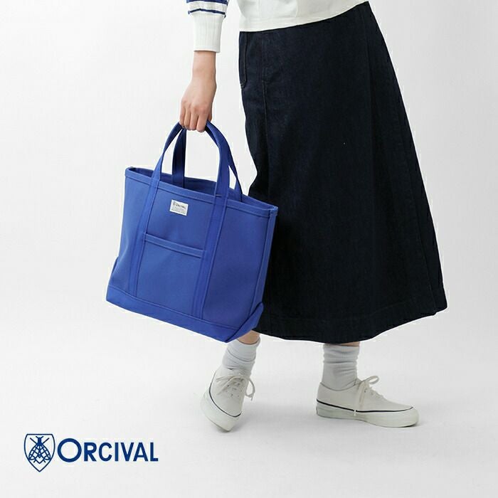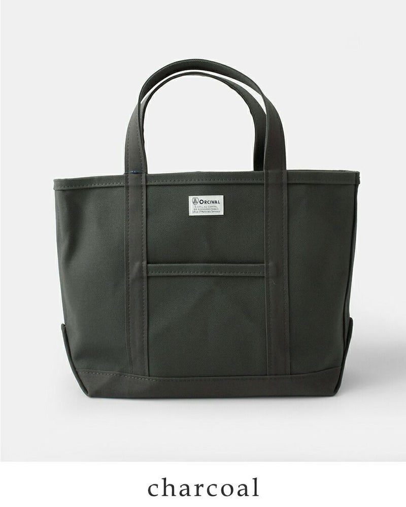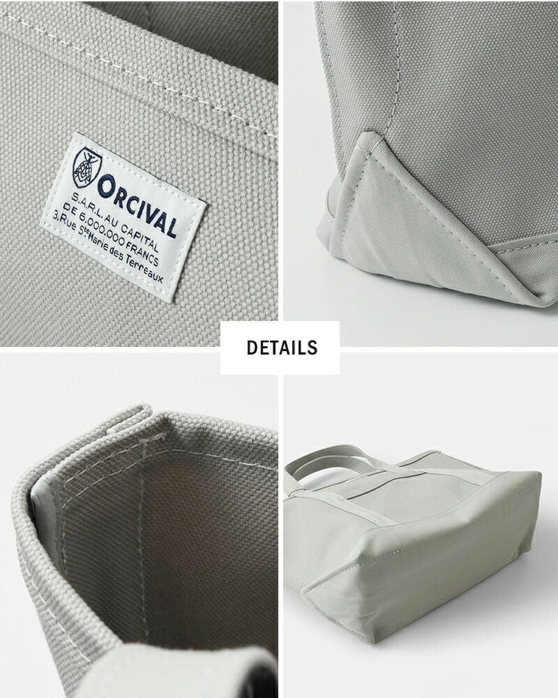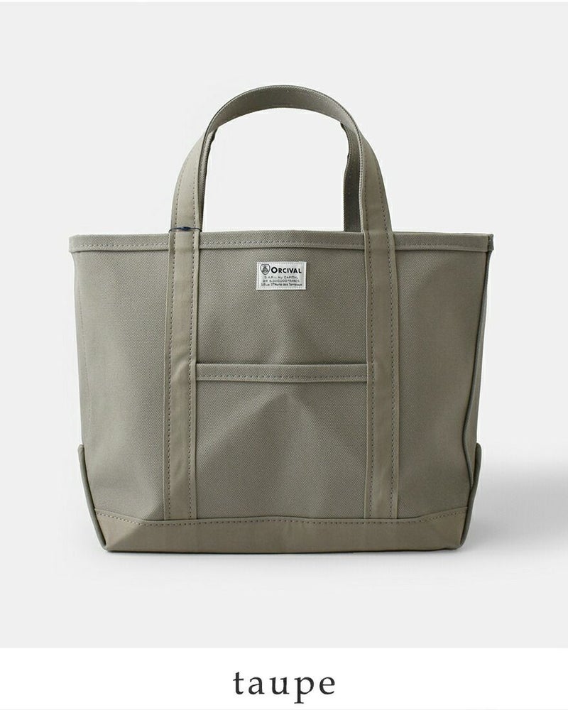 高密度4号帆布のキャンバス地を使用し、しっかりとしたハリ感があるので、型崩れすることなく、腕に掛けても手に持ってもキレイなシルエットを保ちます。フロントにはORCIVALお馴染みのネームタグがあしらわれています。