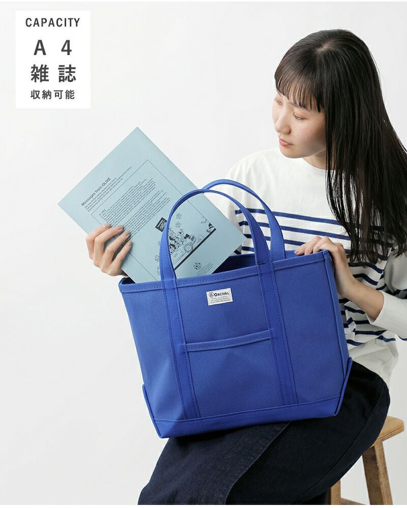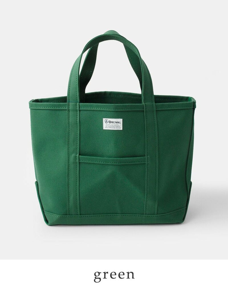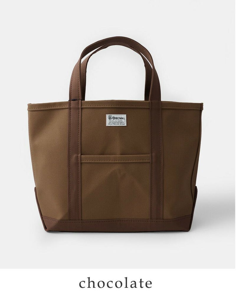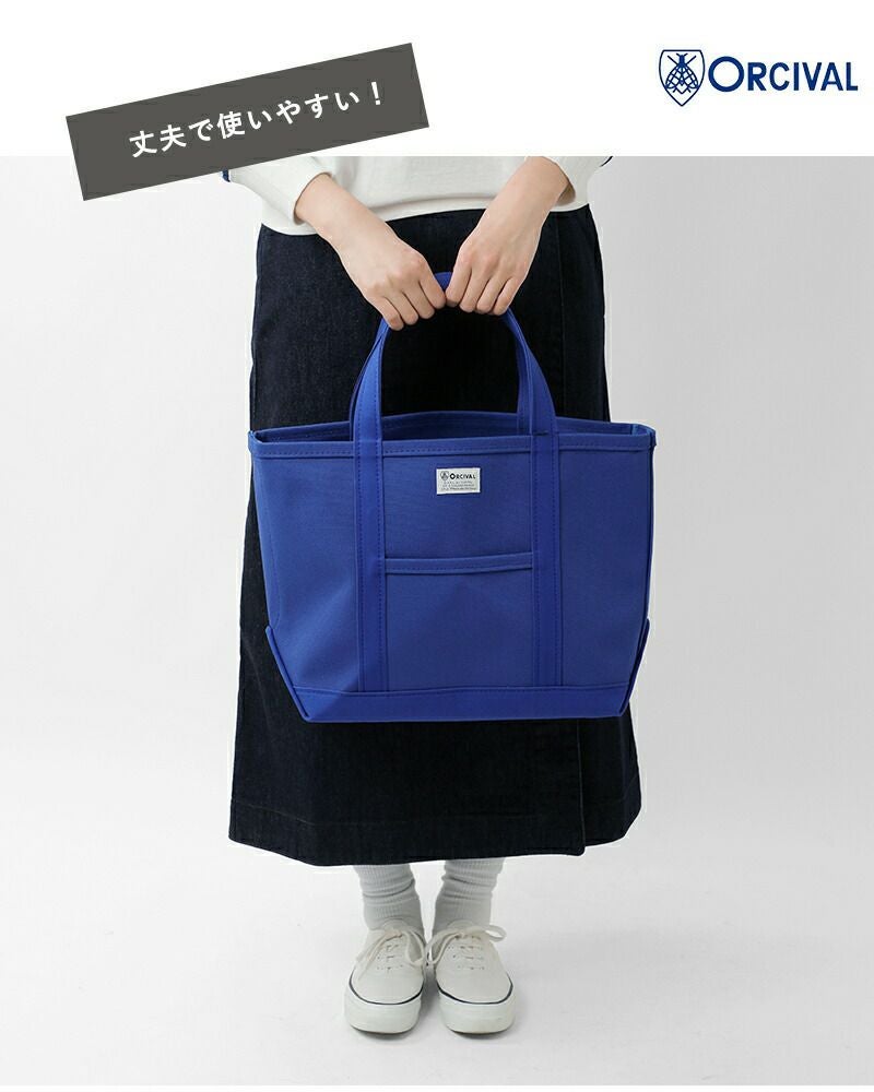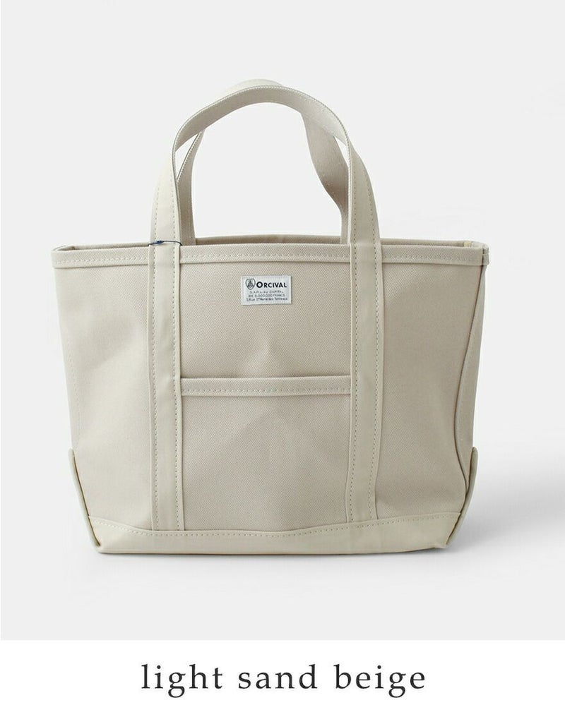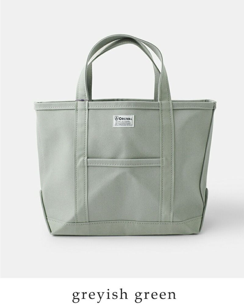 高密度4号帆布のキャンバス地を使用し、しっかりとしたハリ感があるので、型崩れすることなく、腕に掛けても手に持ってもキレイなシルエットを保ちます。フロントにはORCIVALお馴染みのネームタグがあしらわれています。