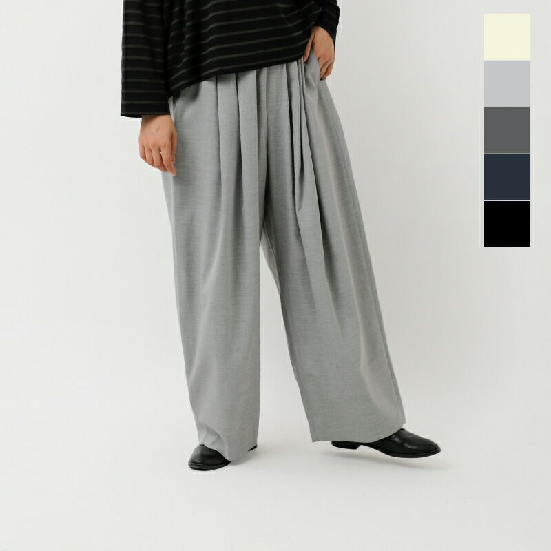 mizuiro ind(ミズイロインド)よりワイド タック パンツのご紹介です。滑らかで上品な質感のワイドタックパンツです。コーディネートに合わせやすいアイテムでベーシックながらかっこよく決まる1枚。mizuiro ind人気のデザインでストレッチもきいているので穿きやすさも体感していただけます。今季おすすめのパンツアイテムです。