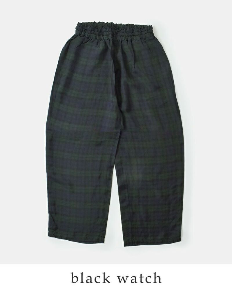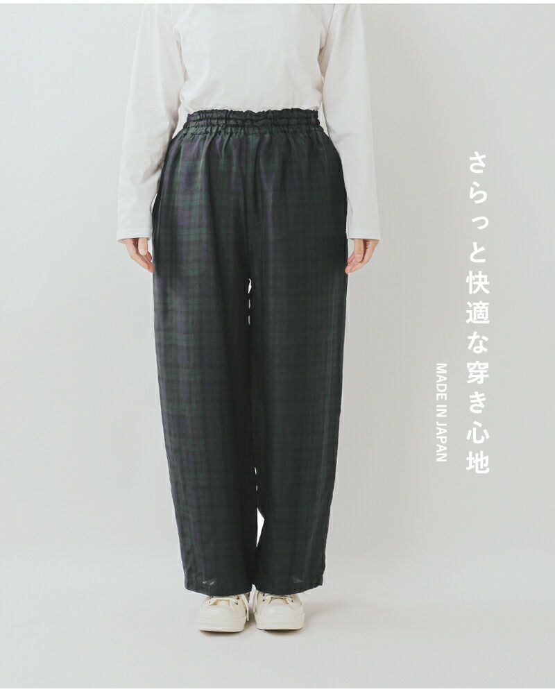 TRAVAIL MANUEL(トラバイユマニュアル)より、チェック サッシュ ワイド パンツのご紹介です。さらりとした生地感で動きやすい、ゆったり楽ちんなワイドパンツ。ウエストにシャーリングゴムを配した、ベルト要らずの一枚。控えめな光沢感のある生地が、上品なニュアンスを演出してくれます。