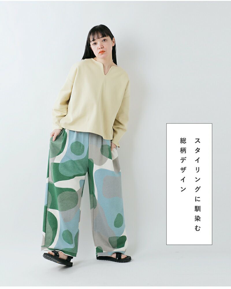 Dulcamaraこだわりの配色で描かれた模様をワイドパンツに詰め込みました。