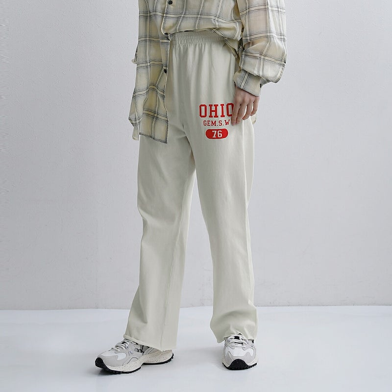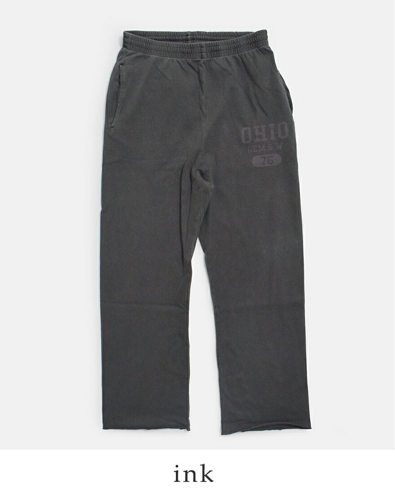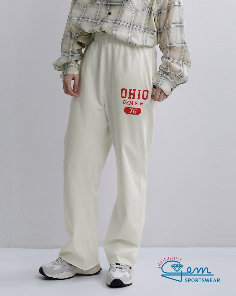 左腿に施された「OHIO」のカレッジプリントが、コーディネートに程よいアクセントを加えるイージーパンツ。