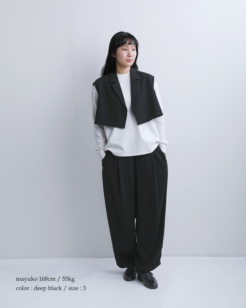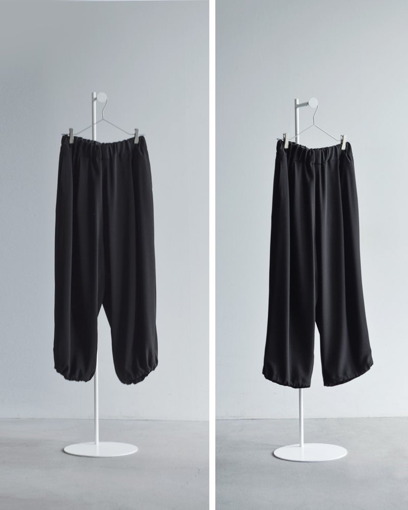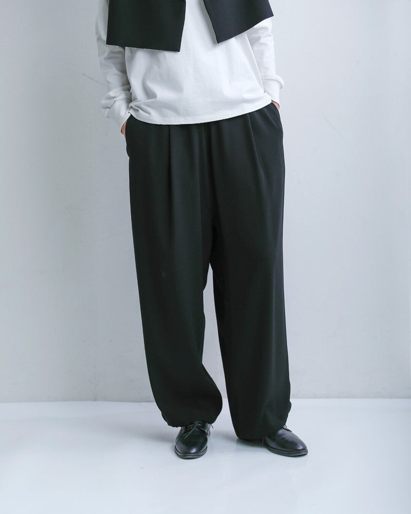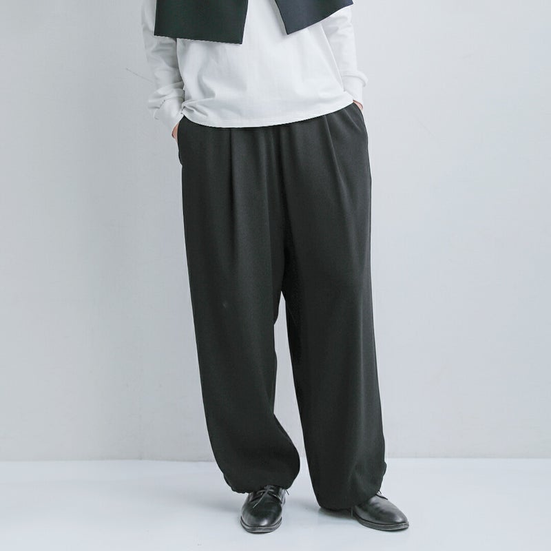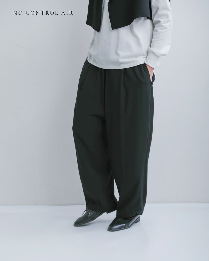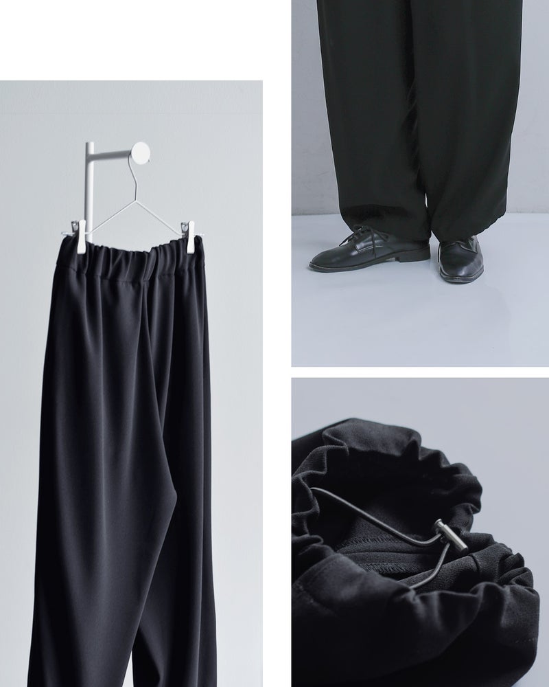 NOCONTROLAIR(ノーコントロールエアー)より、ライトクレープダブルクロスイージーパンツのご紹介です。ブランド定番のライトクレープダブルクロス生地を使用した、ミニマルで洗練された印象のイージーパンツ。軽やかな着心地ながら適度なハリと落ち感があり、上品でシルエットが美しく決まるのが特徴です。裾を絞ってジョガーパンツのように着こなすこともできます。