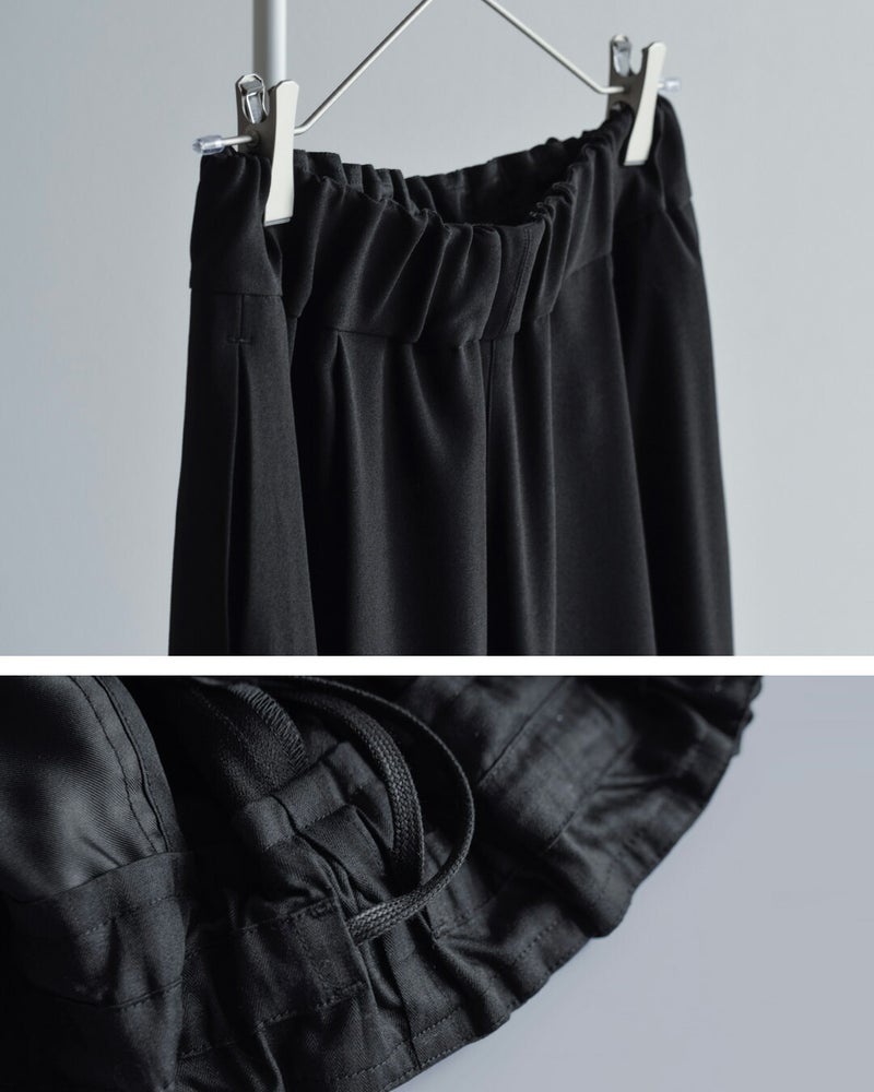 裾に施されたドローコードを絞ることでジョバーパンツのような雰囲気で着こなしていただけます。トップス次第でカジュアルにもきれいめにも対応し、裾の仕様でデザインも変えられる優秀な一本です。