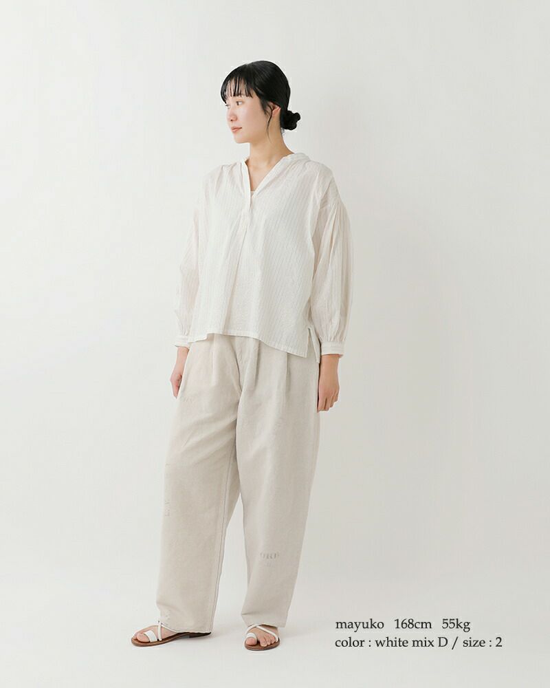 他の画像を見る ドライな生地に繊細な箔加工を施したモダンな生地。光を受けて静かにきらめきmatureな一枚 Gauze# ガーゼ コットン コズミック ヌーボーパンツ COSMIC NOUVEAU PANTS g1177 レディース 2026ss新作 春夏 ¥ 30,580 ¥ 30,580 税込 予約 販売期間 2026/02/14 10:00 〜 2026/04/20 23:59 詳細を見る お気に入りに登録する