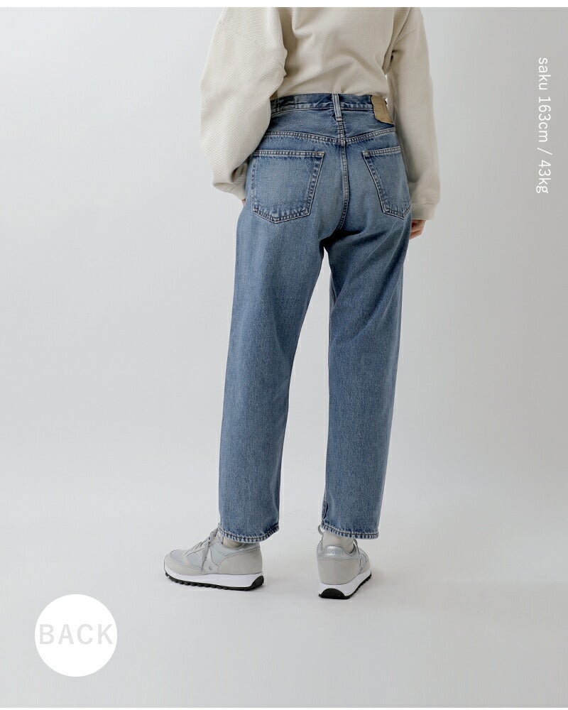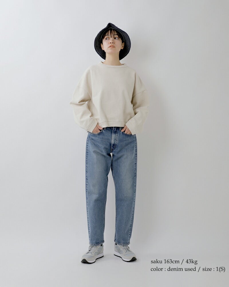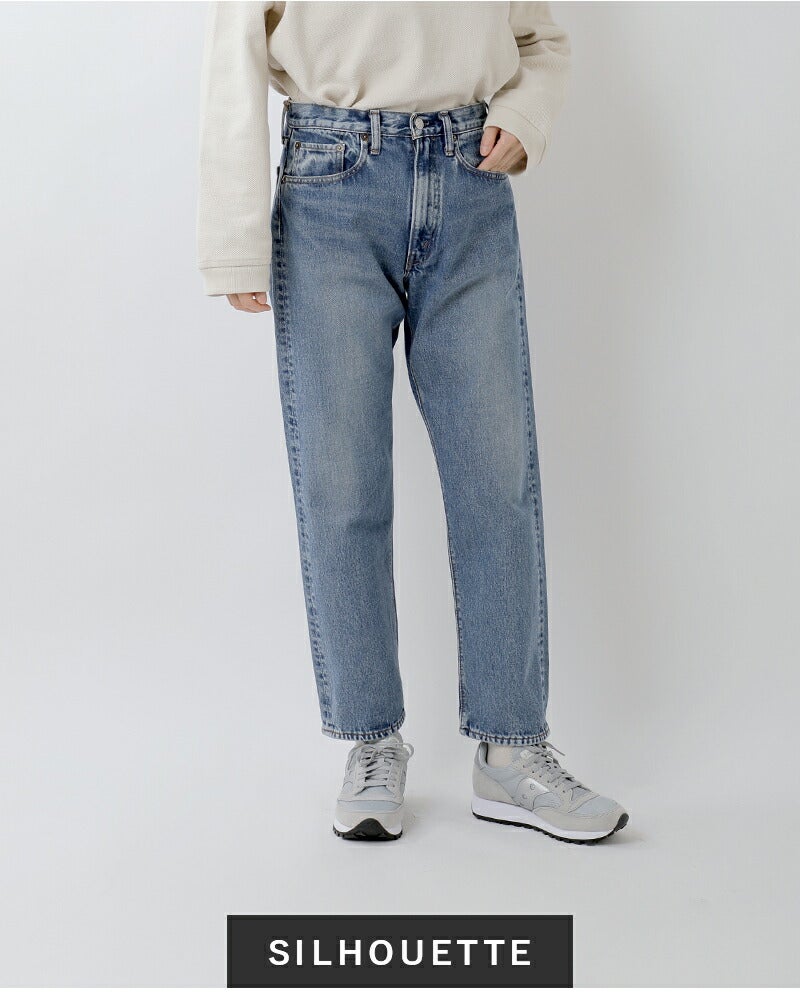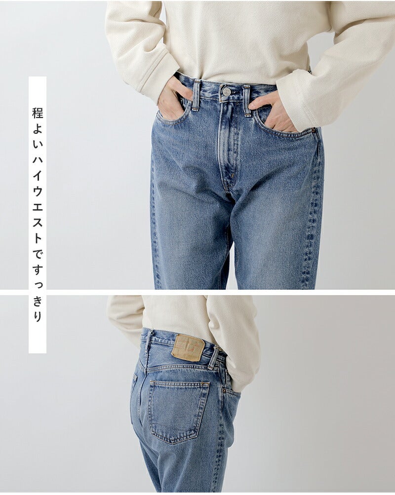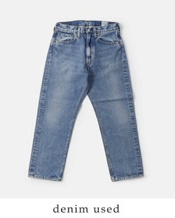or slow(オアスロウ)よりショートレングス 105 90s ジッパーフライ ミッドユーズド デニムパンツのご紹介です。1980年代?1990年代のアメリカ製ジーンズを参考にし当時の独特な表情を再現したデニムパンツ。紡績から縫製まで当時のディテールを細かく再現しており、ブランドのこだわりを感じます。ショートレングスのすっきりとした丈感。ヴィンテージのような独特の色落ちが着こなしに深みを加え、長くご愛用いただける逸品です。