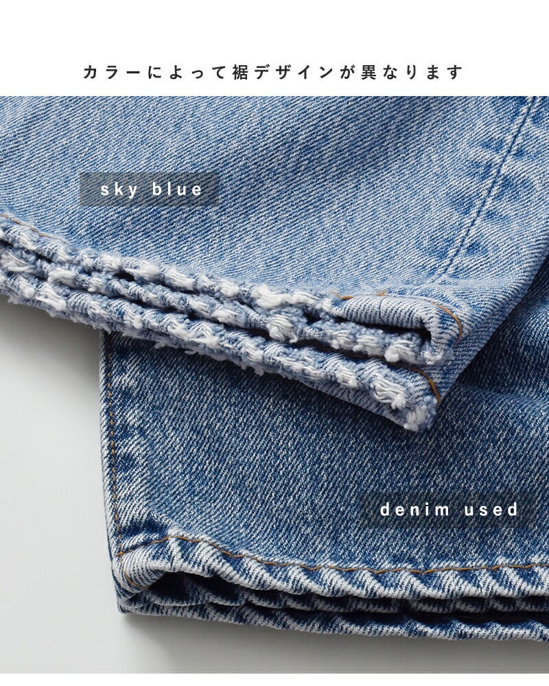 カラーによって裾デザインが異なります。 sky blue→裾ダメージあり denim used→なし