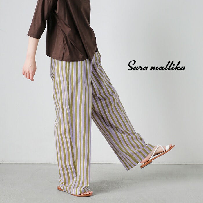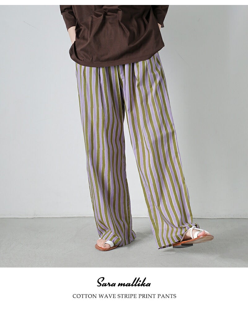 柔らかなコットン素材を使用したウェーブ状のストライプ柄が表情豊かなプリントパンツ Sara Mallika サラマリカ コットン ウェーブストライプ プリント パンツ 020661sf3 レディース 2026ss新作 春夏