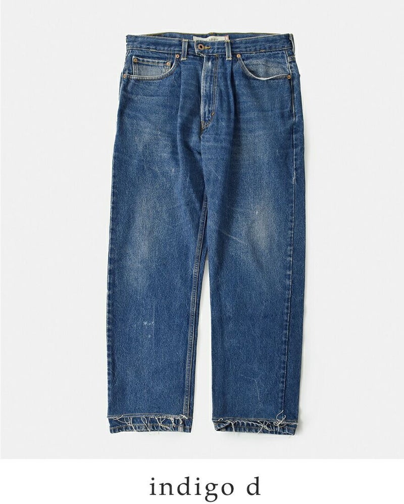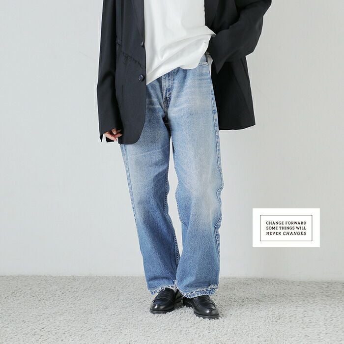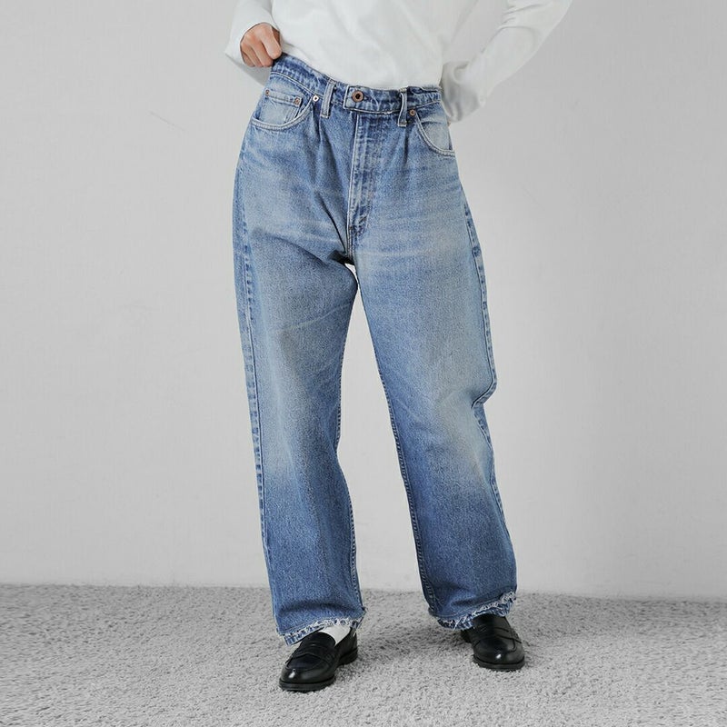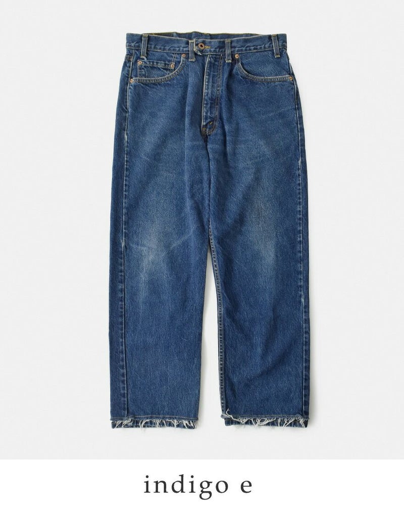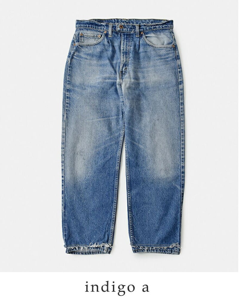 CHANGES(チェンジーズ)より、リメイク デニムパンツをご紹介します。ビッグサイズ のユーズドリーバイスをリメイクしたデニムパンツ。ウエストにタックを配置し、腰周りに適度な膨らみをつけて、ゆったりとしたシルエットに仕上げています。裾は生地を2重に重ねたカットオフ仕様で、手の込んだ仕上がり。元のデニムパンツの良さを損ねることなく、新しくモダンに生まれ変わった、世界で1つだけのデニムパンツです。