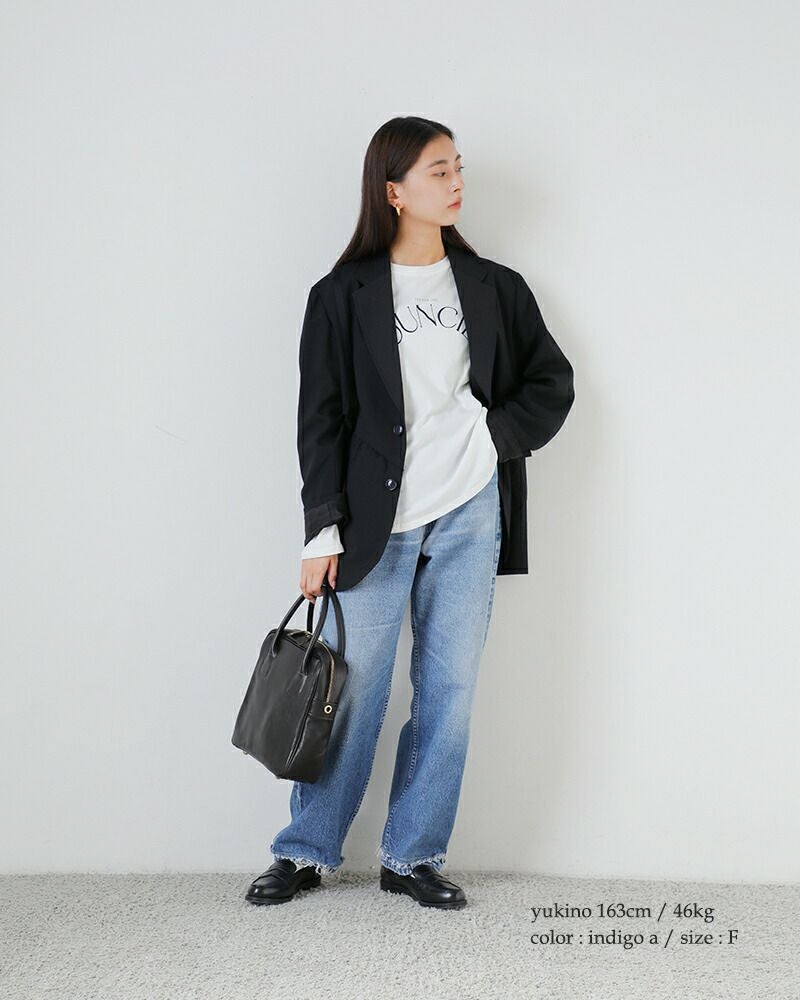 ゆったりとしたワイドストレートシルエットで、女性がきれいに穿ける形です。