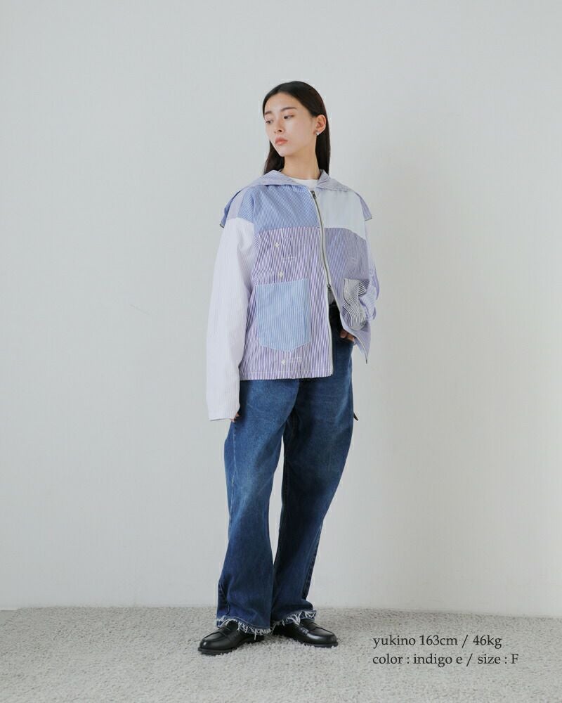 ユーズド特有の雰囲気を使い再構築したアイテムの為、素材特有の汚れ・アタリ・ダメージ等をデザインとして落とし込んでいます。